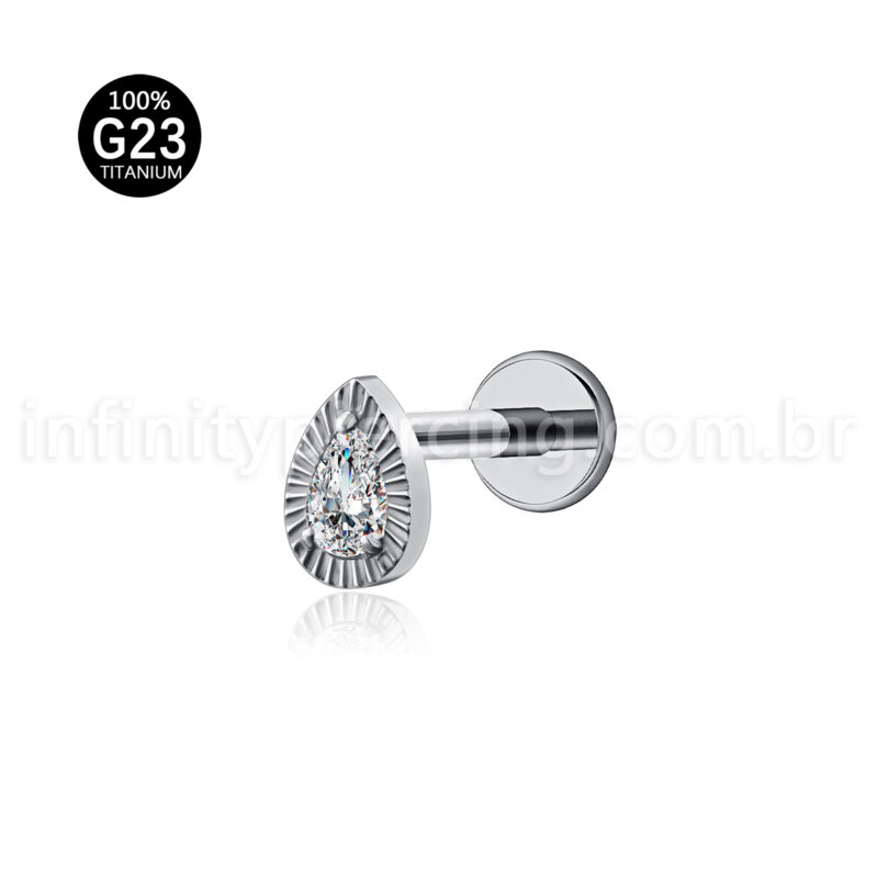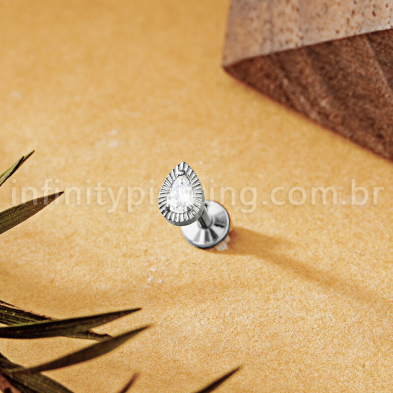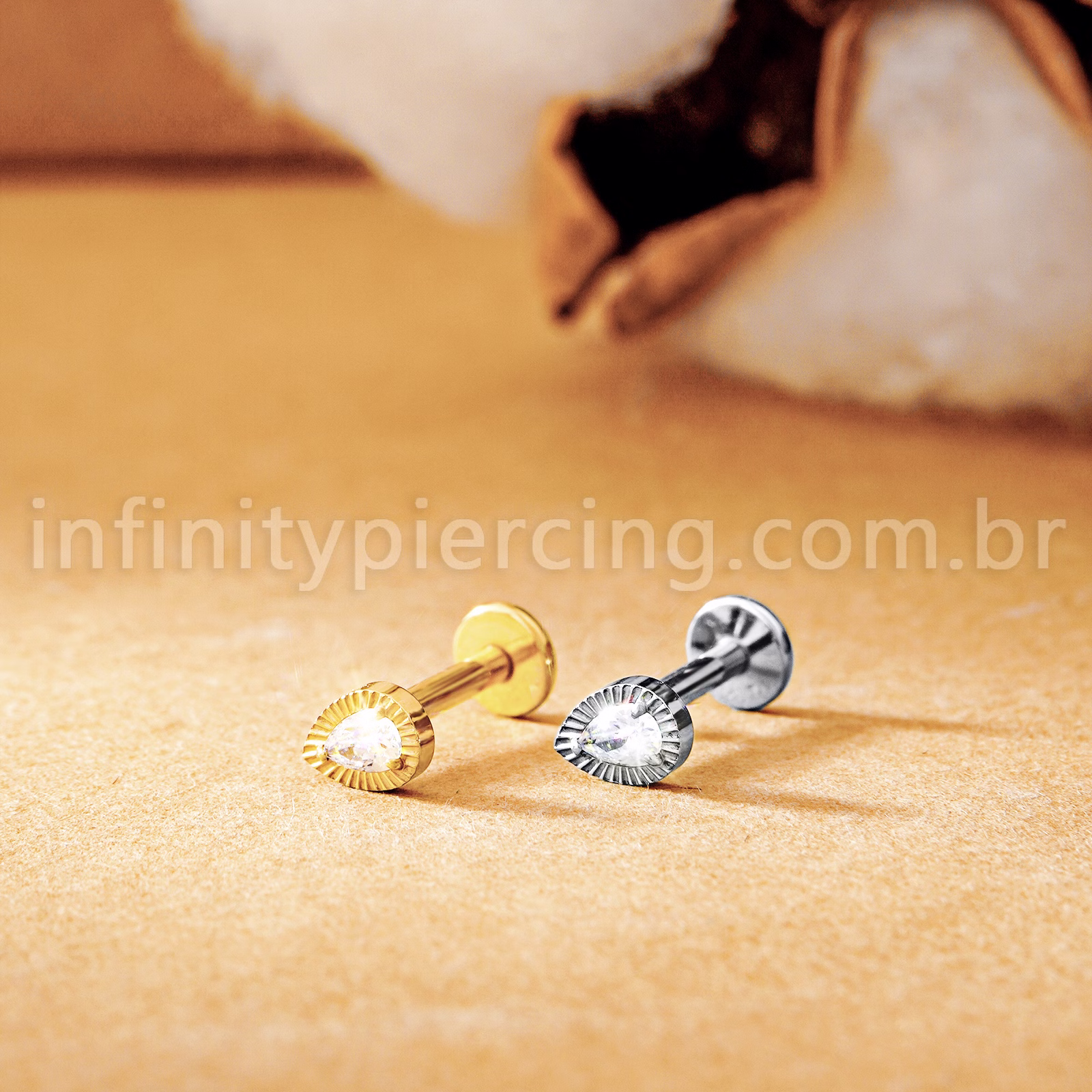Piercing Labret Titânio Gota Zircônia Cravejada - Infinity Piercing