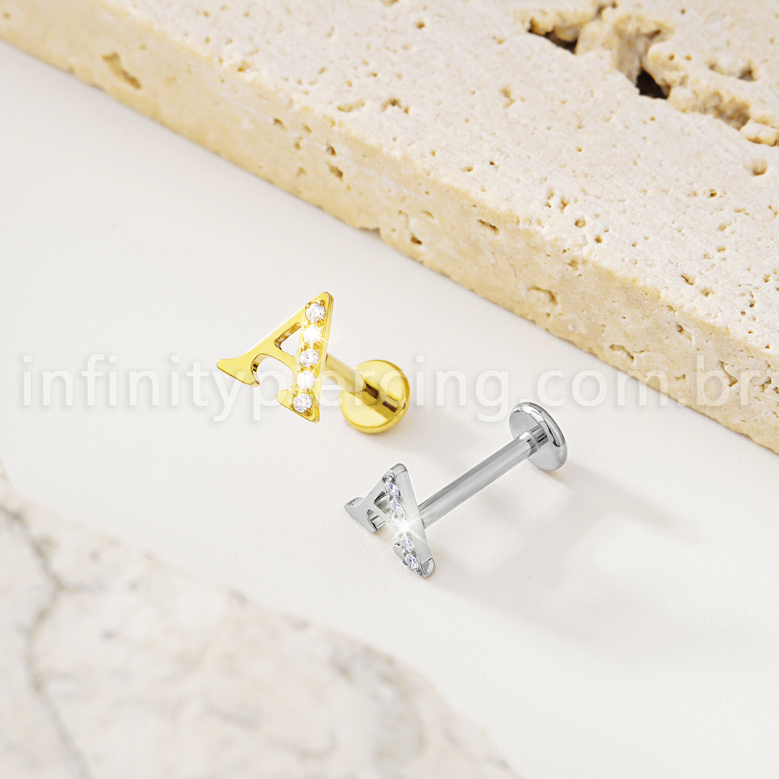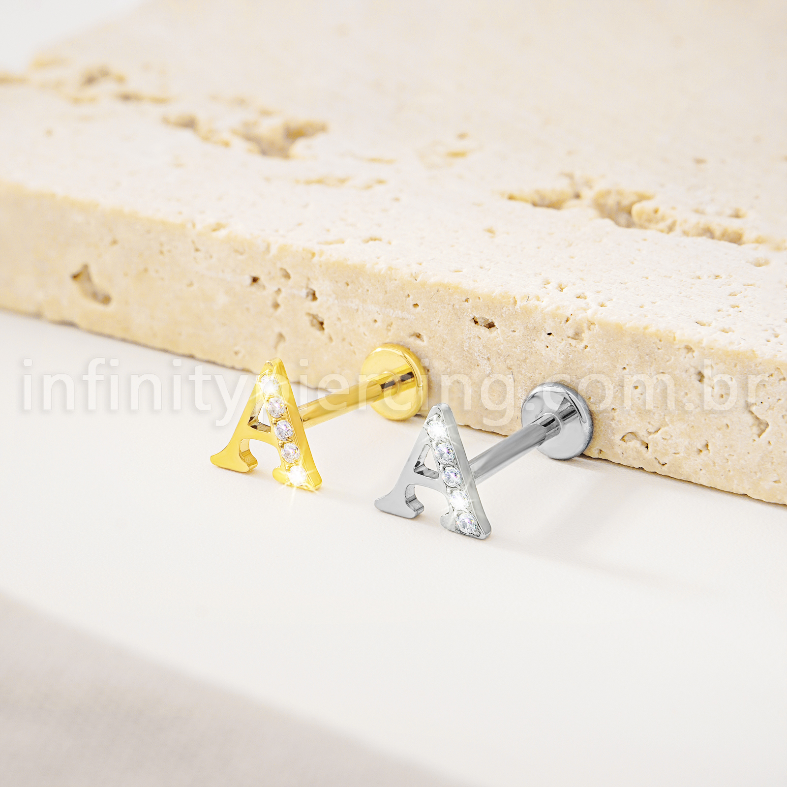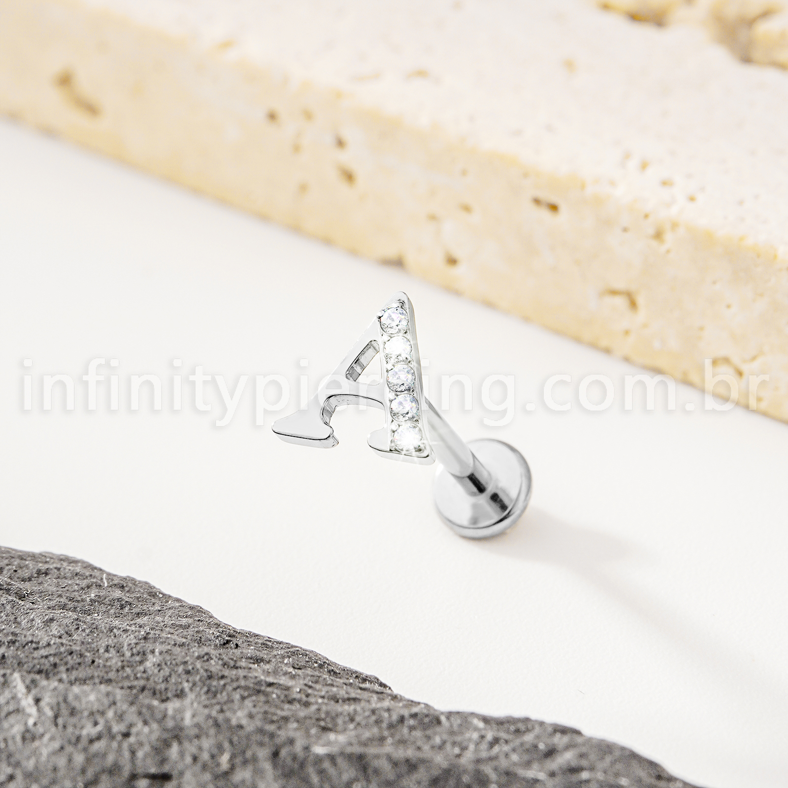 Piercing Labret Titânio Letras Com Zircônia Cravejada - Infinity Piercing