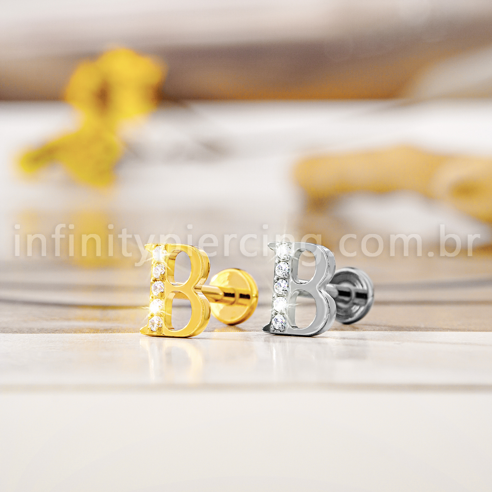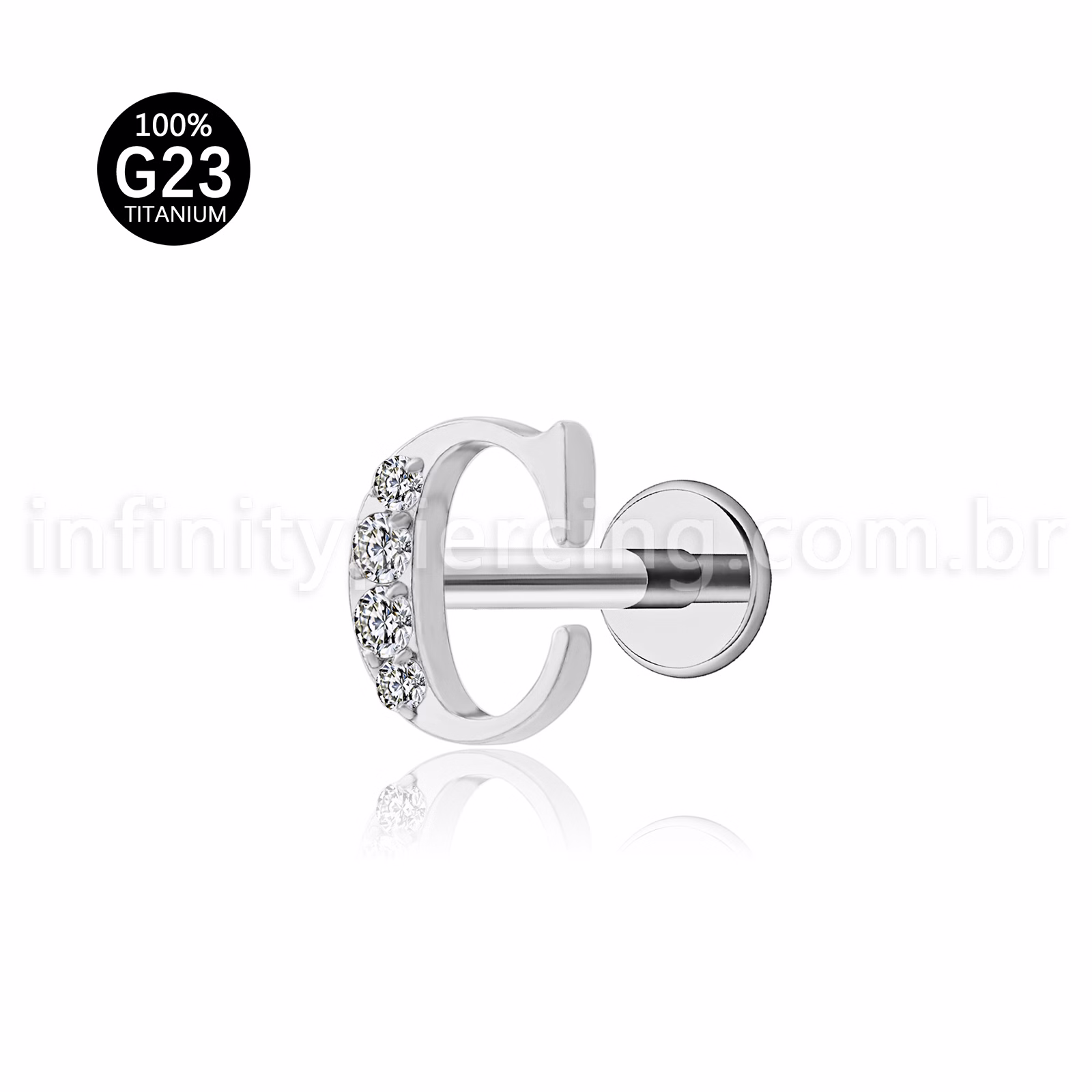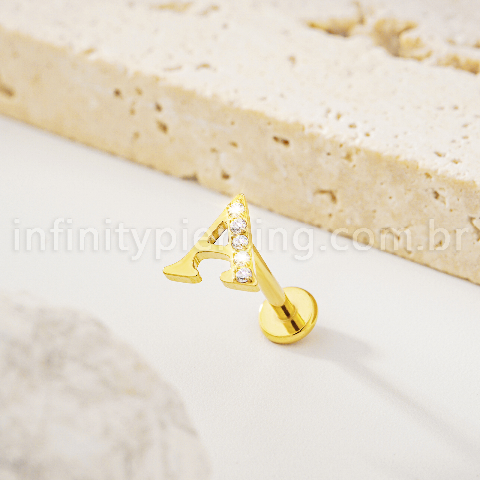 Piercing Labret Titânio Letras Com Zircônia Cravejada - Infinity Piercing