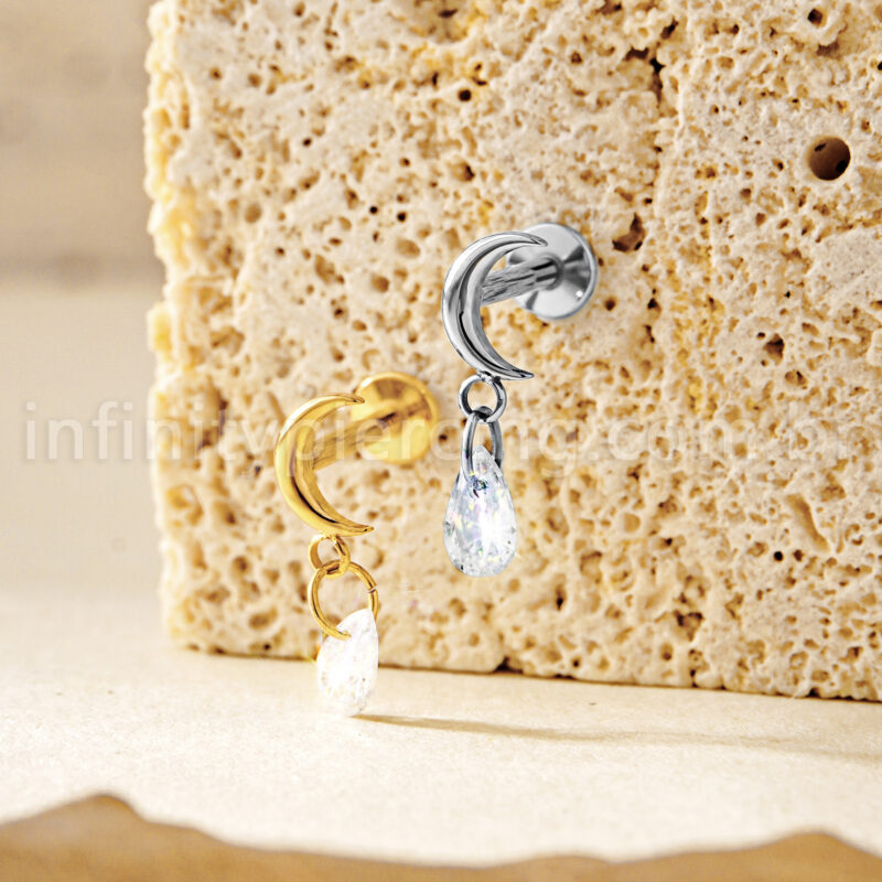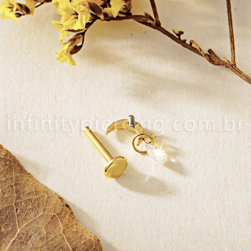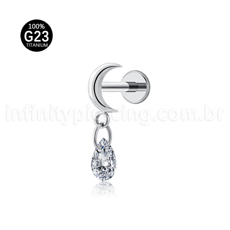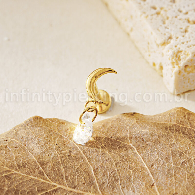 Piercing Labret Titânio Lua Pingente Gota - Infinity Piercing