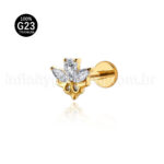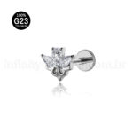 Piercing Labret Titânio Meia Flor Com Zircônia Cravejada