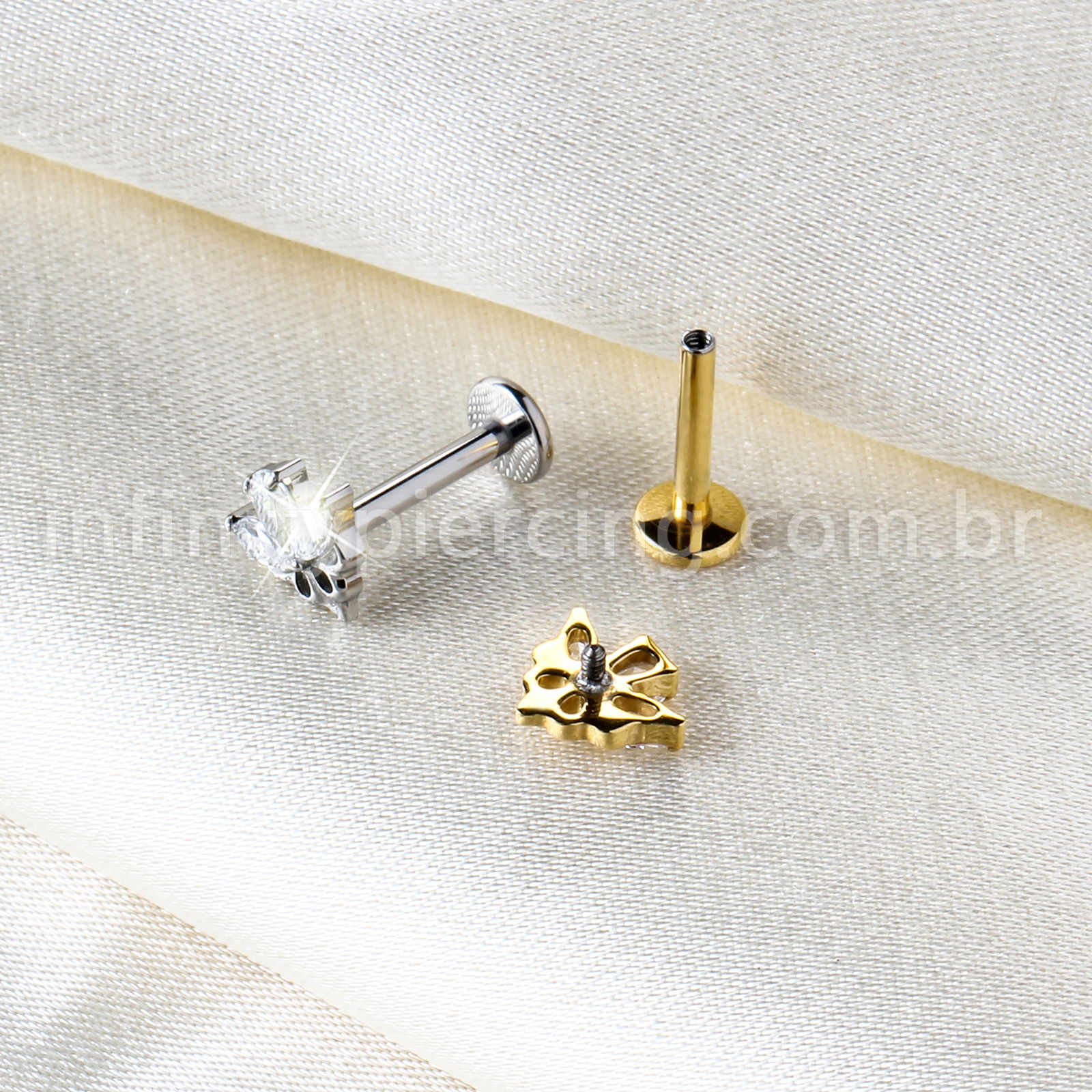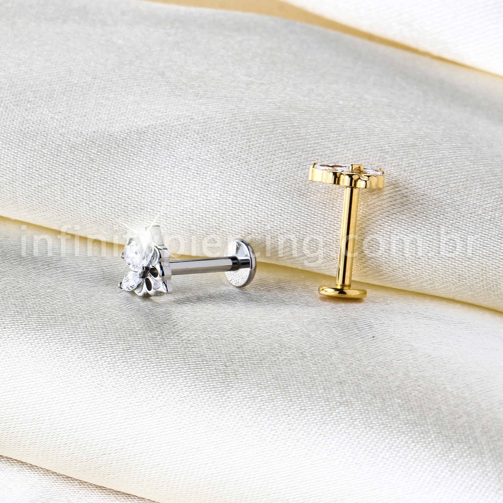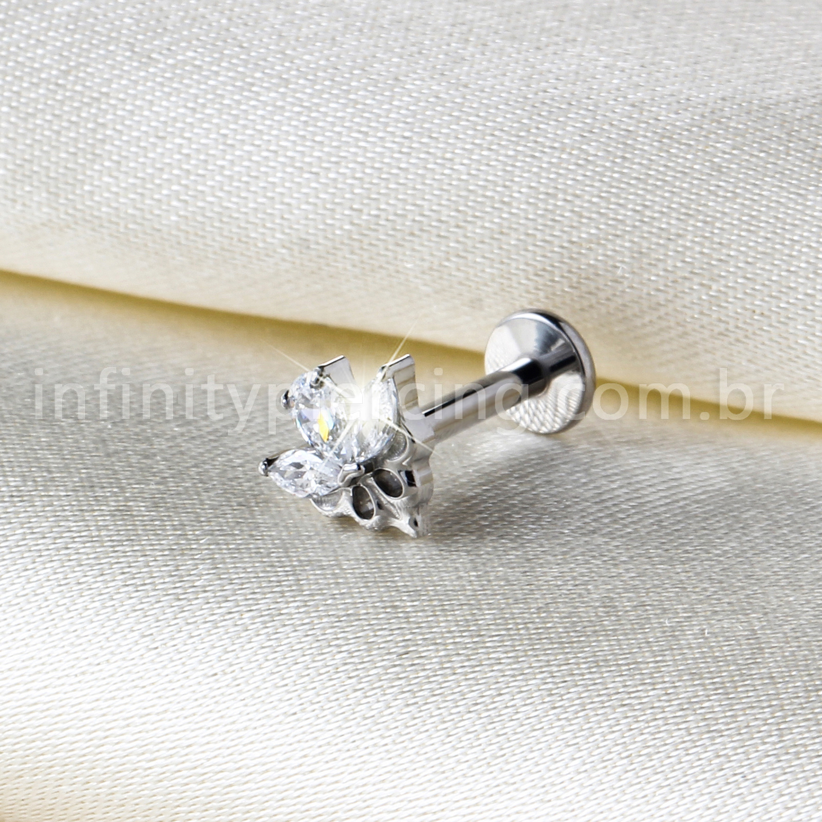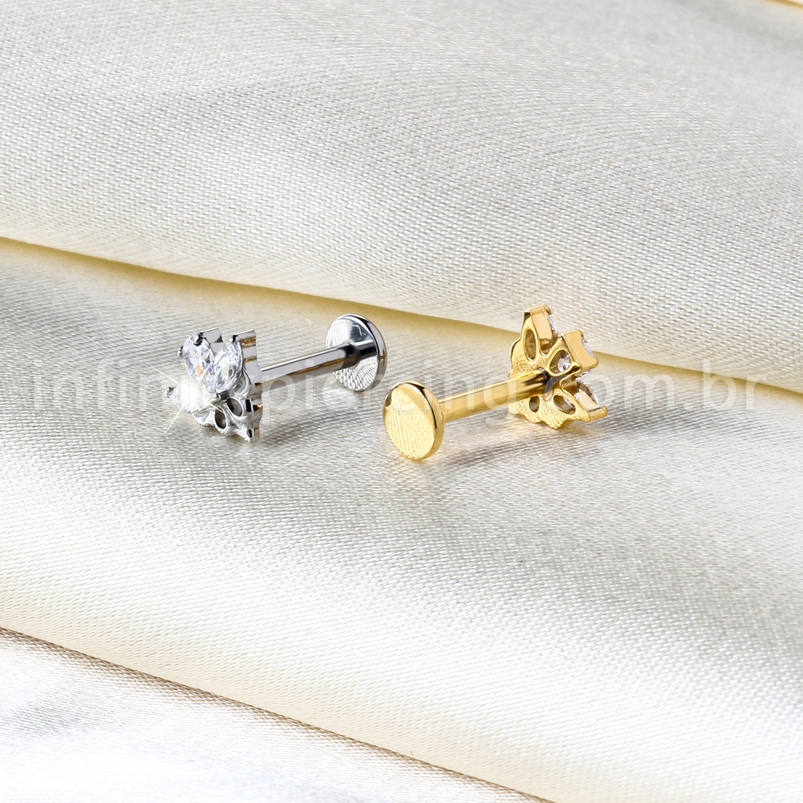 Piercing Labret Titânio Meia Flor Com Zircônia Cravejada - Infinity Piercing