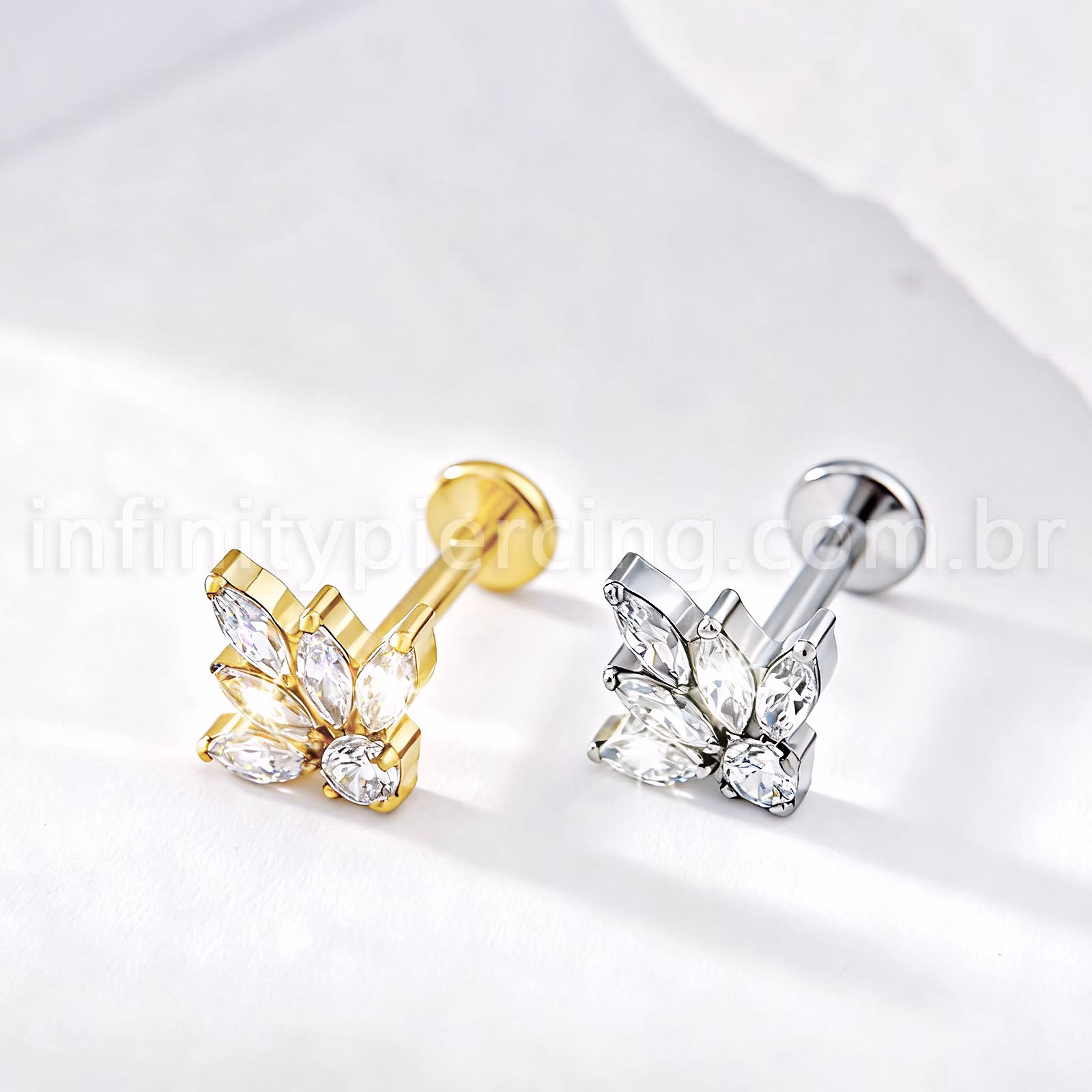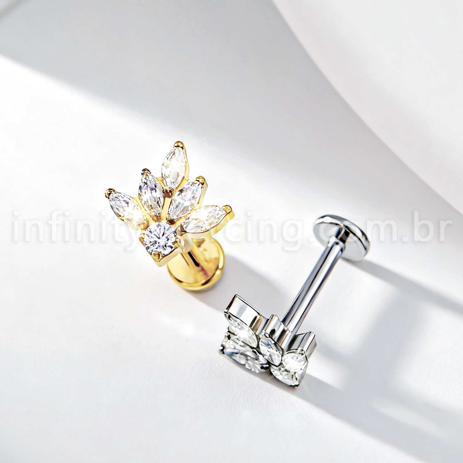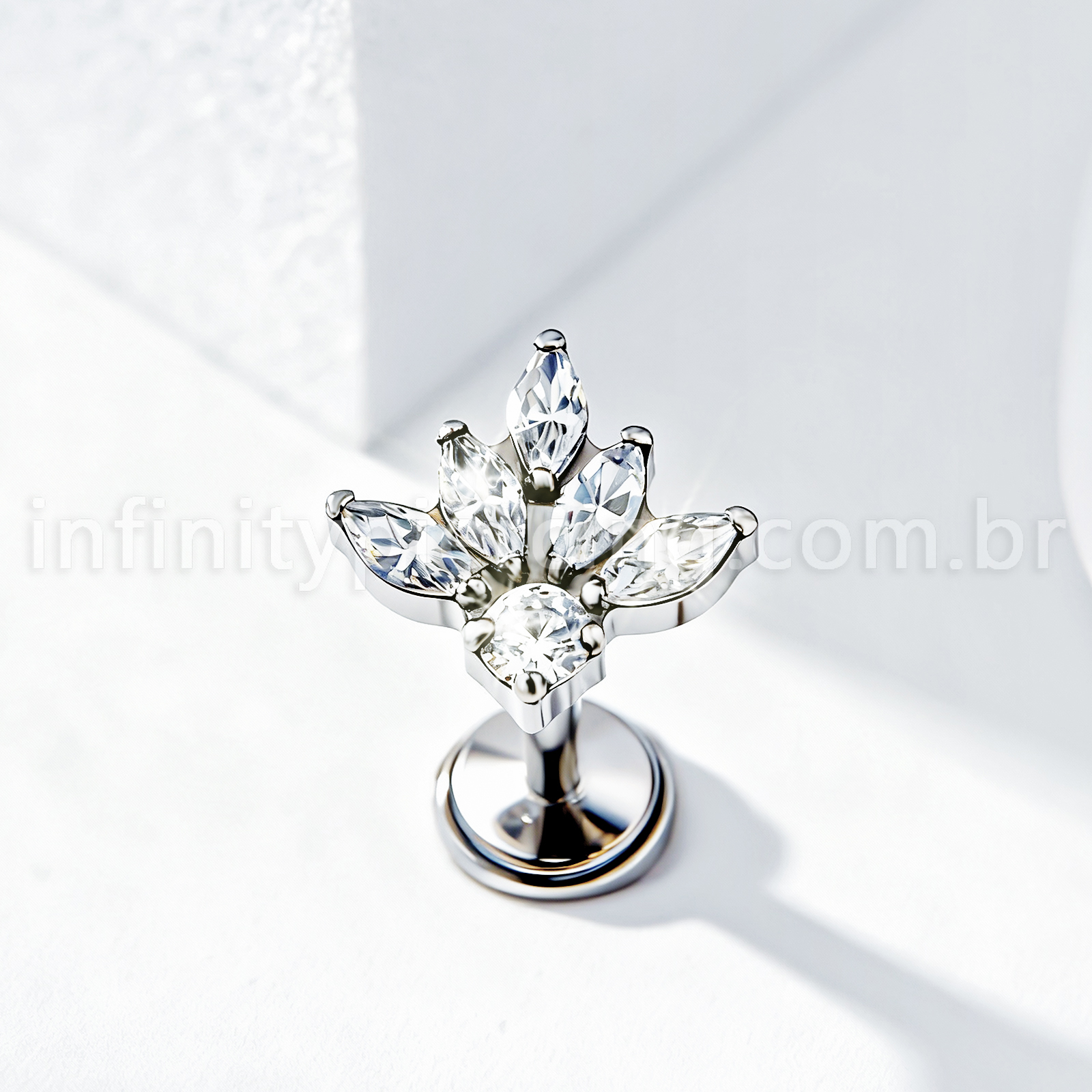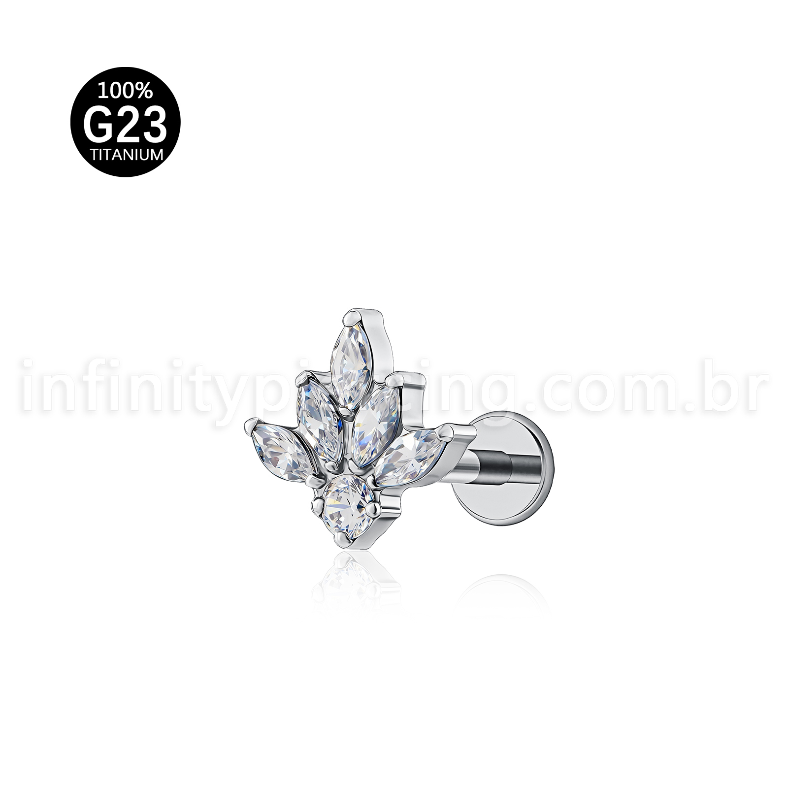 Piercing Labret Titânio Meia Flor Zircônia Cravejada - Infinity Piercing