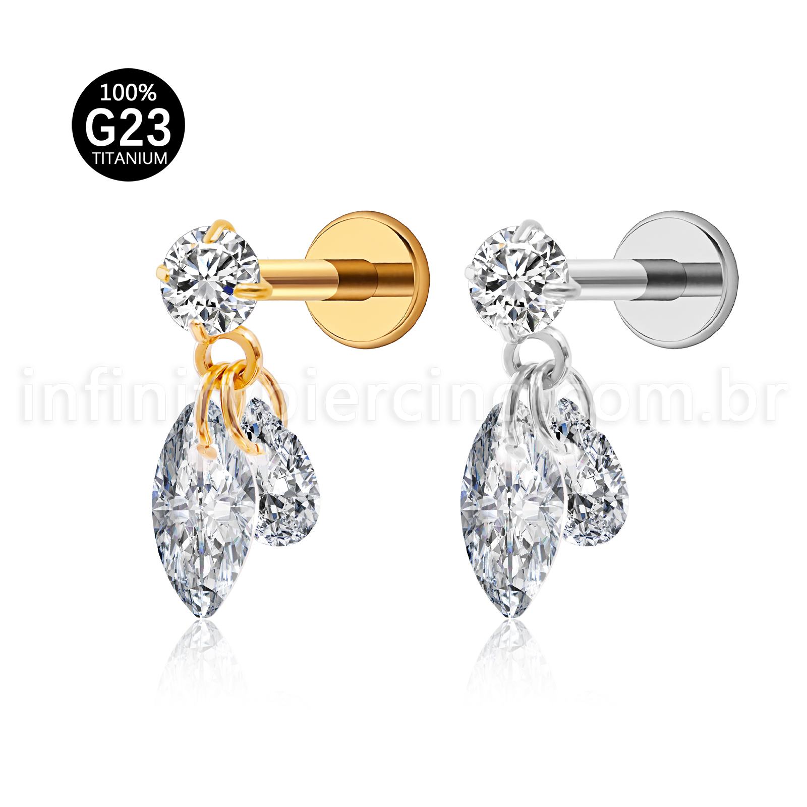 Piercing Labret Titânio Ponto De Luz Com Pingentes - Infinity Piercing