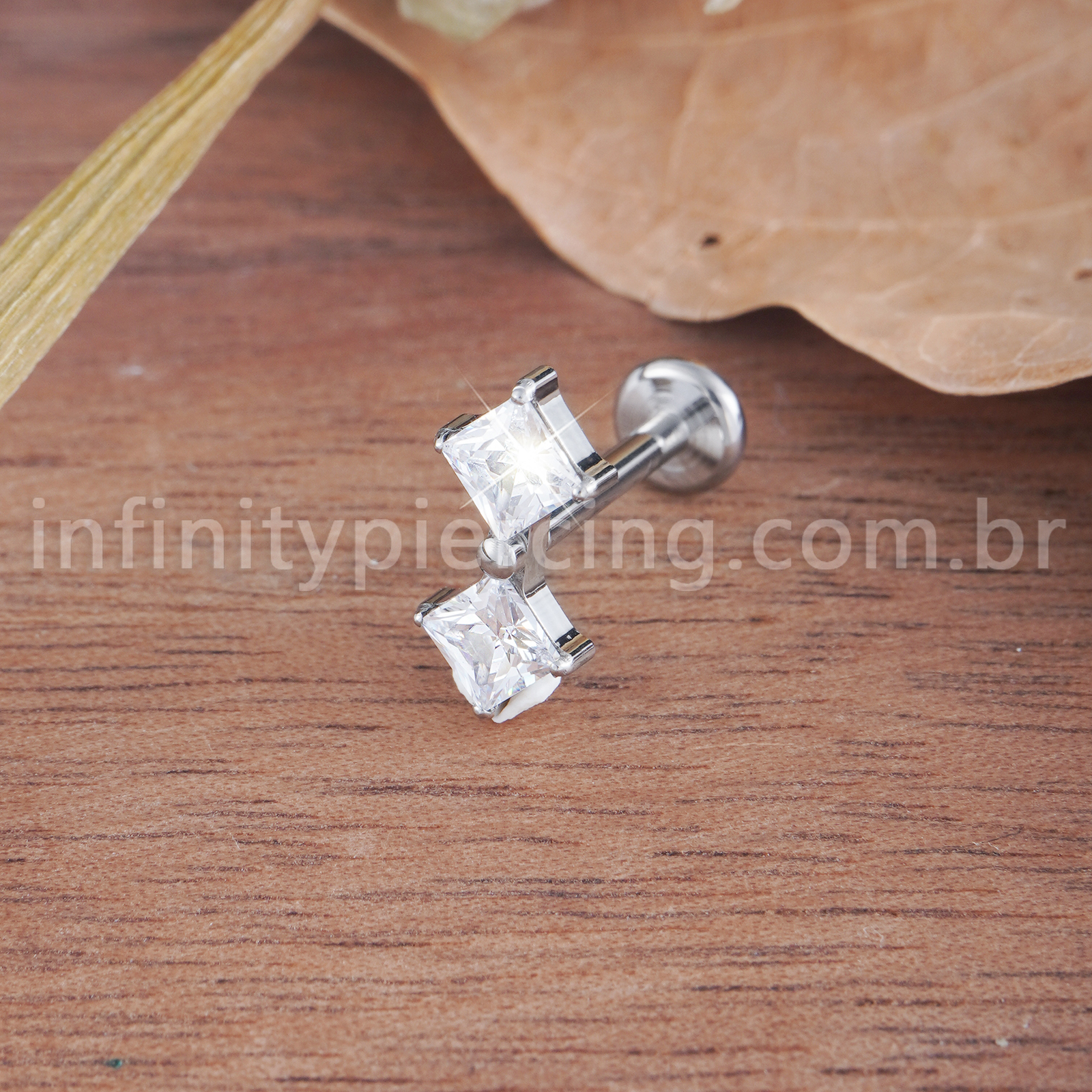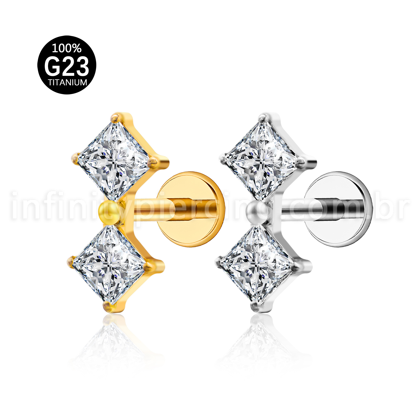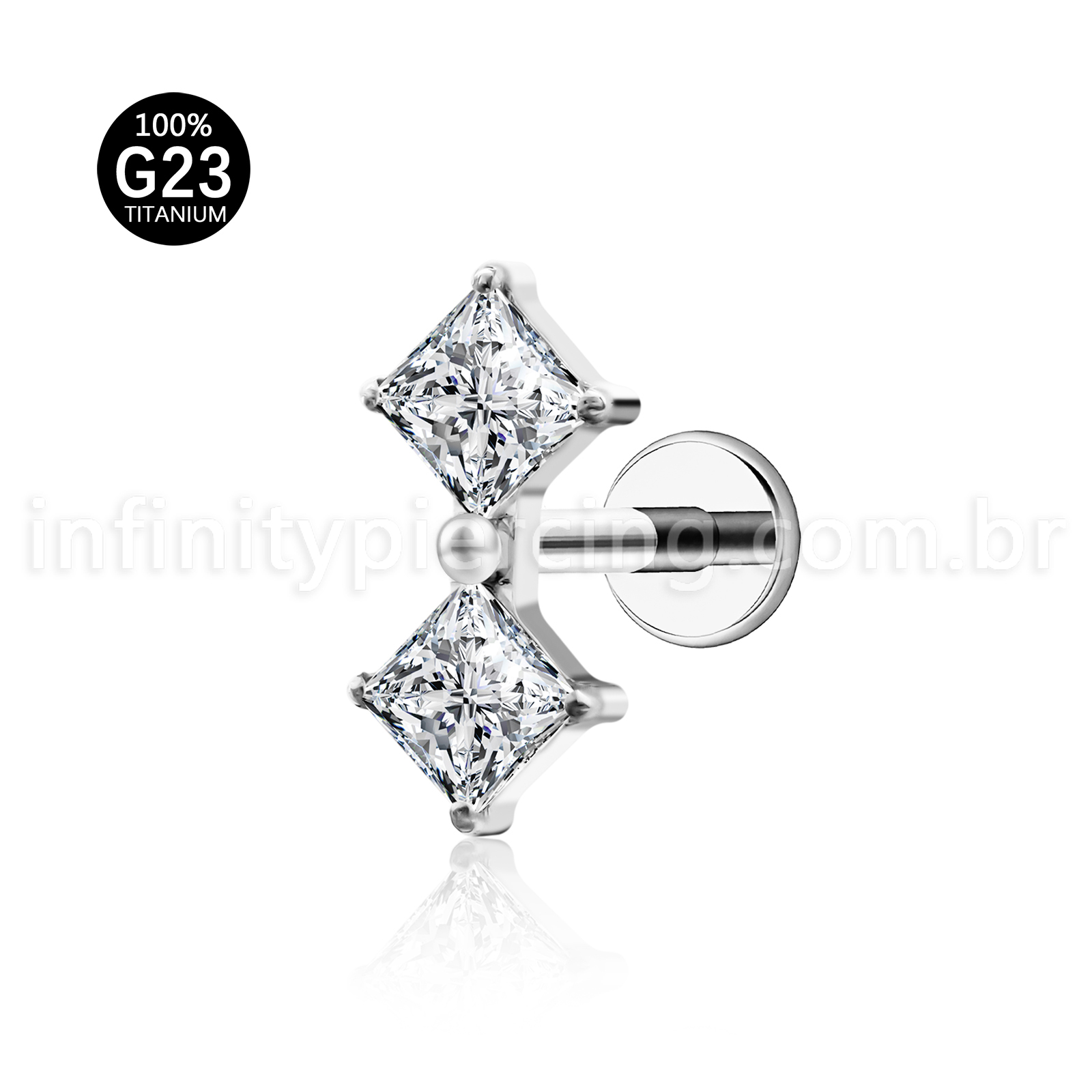 Piercing Labret Titânio Quadrado 2 Zircônias - Infinity Piercing