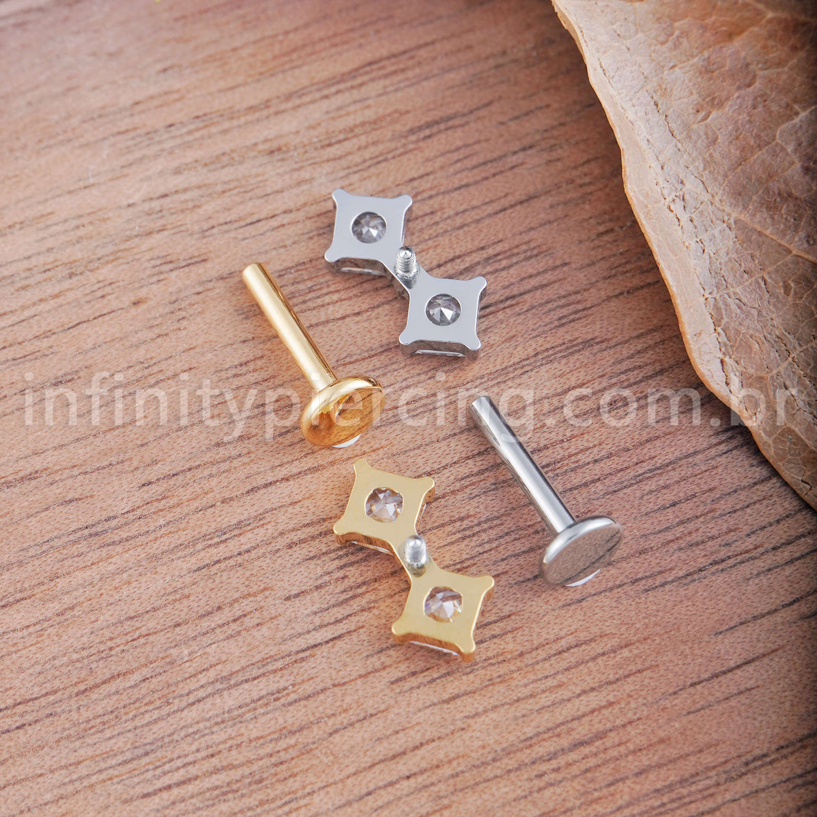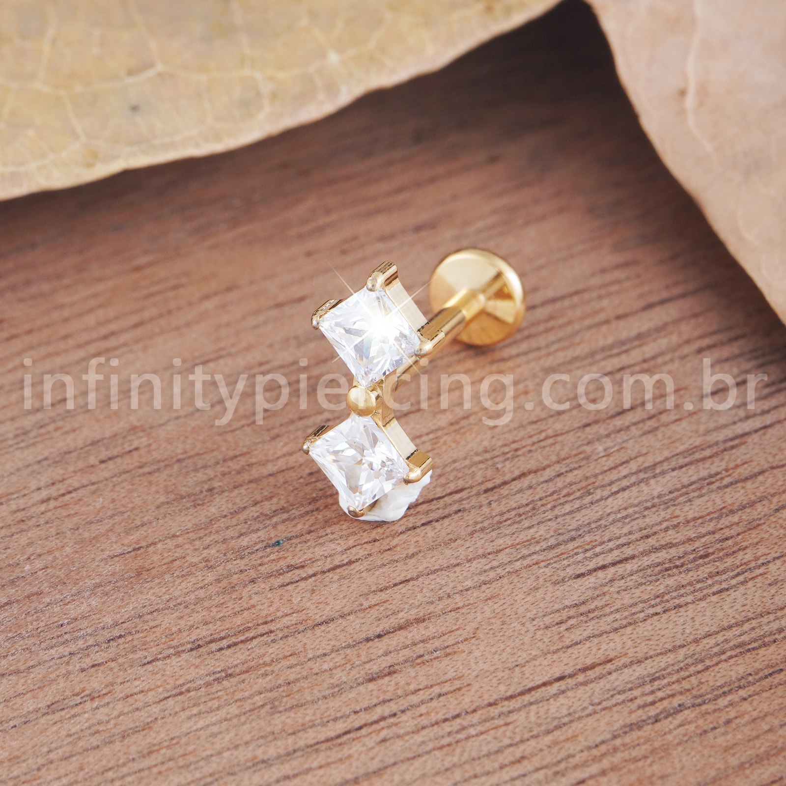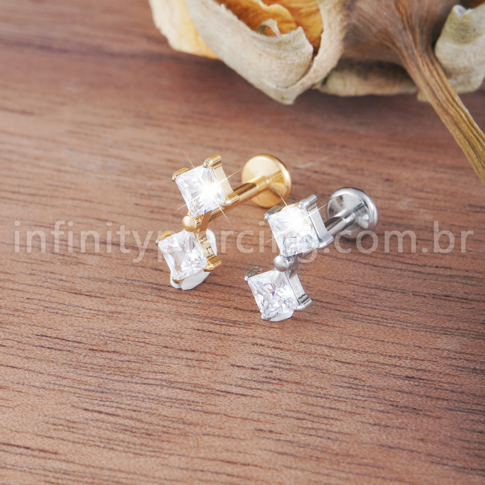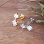 Piercing Labret Titânio Quadrado 2 Zircônias - Infinity Piercing