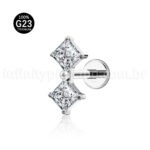 Piercing Labret Titânio Quadrado 2 Zircônias
