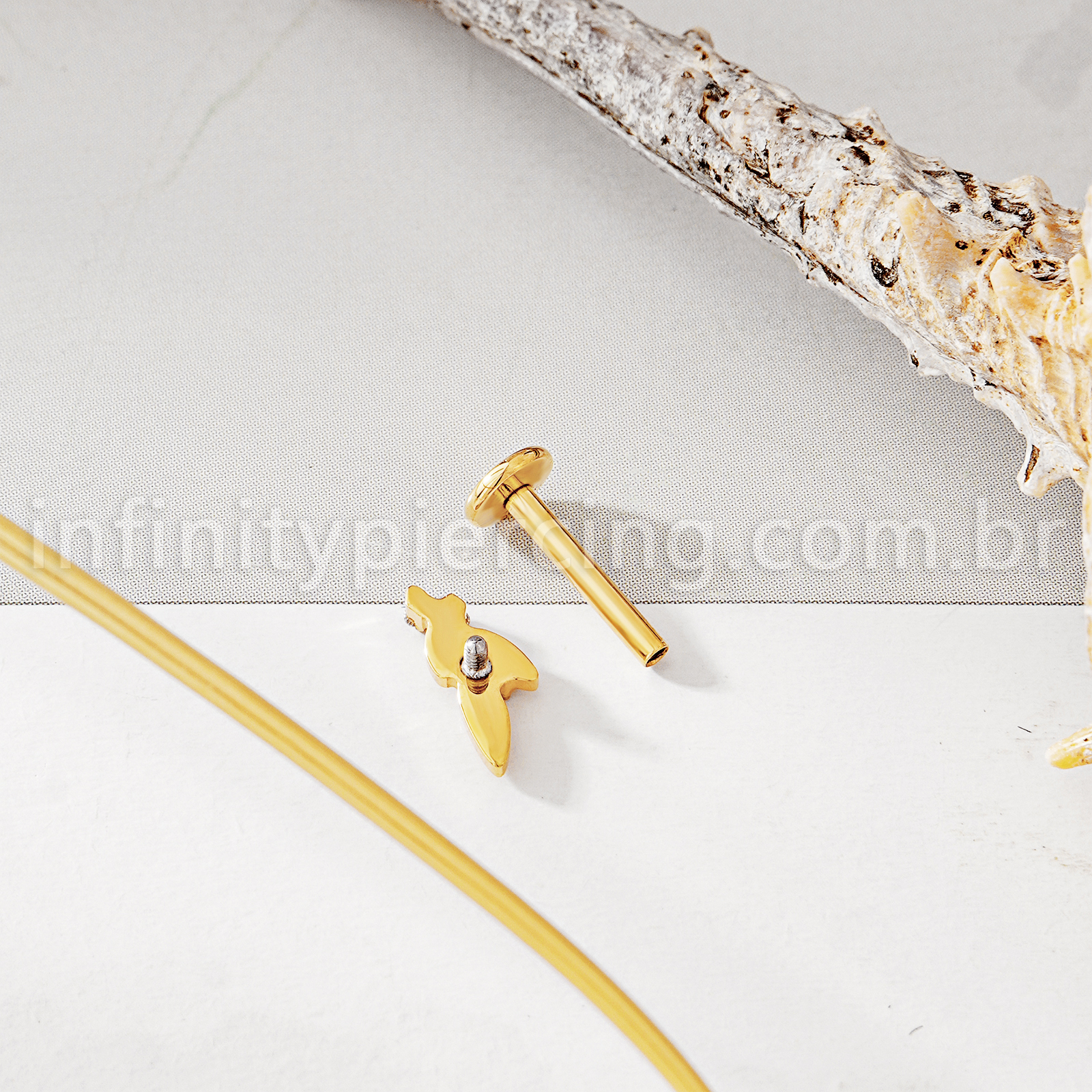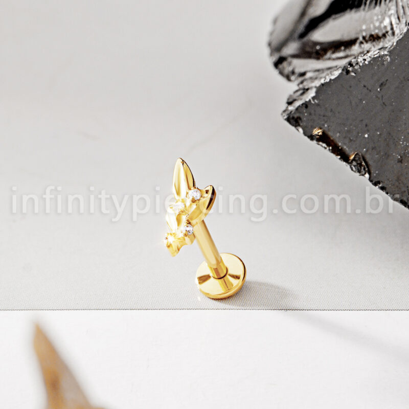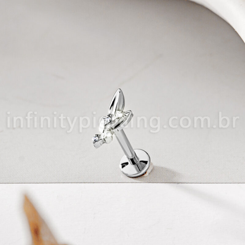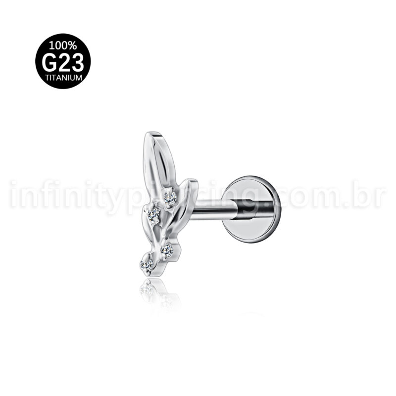 Piercing Labret Titânio Ramo Com Zircônia Cravejada 1.2X8 10864 - Infinity Piercing