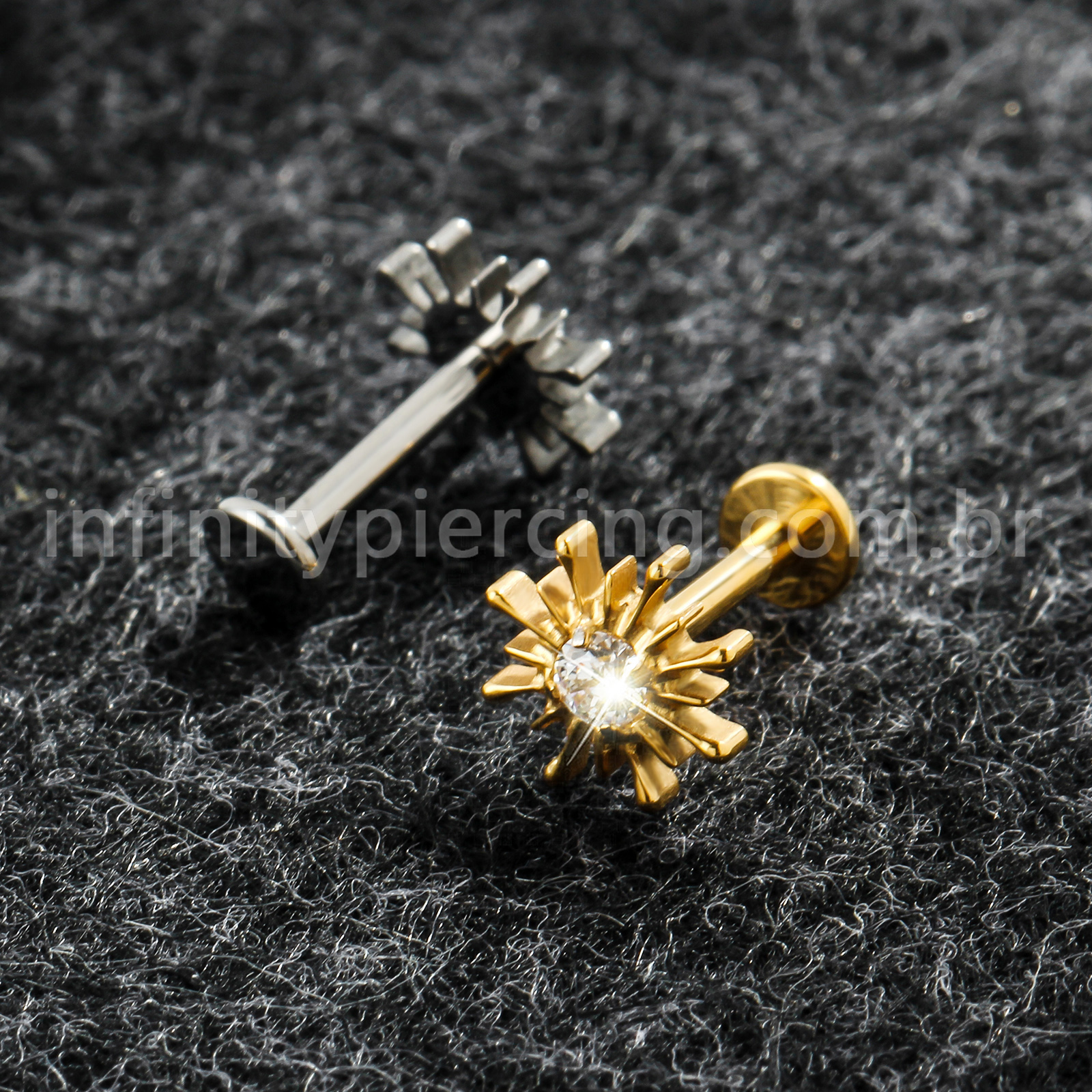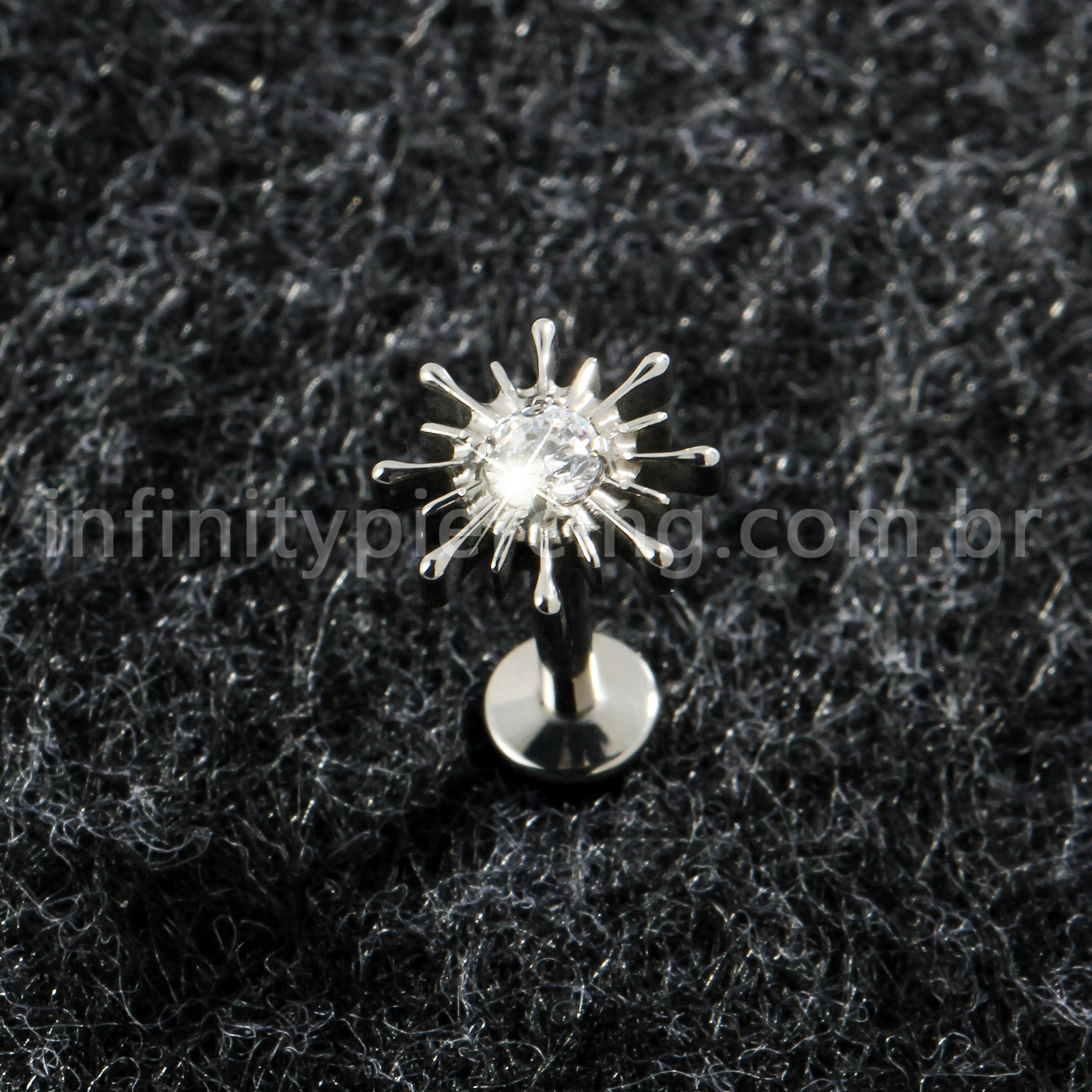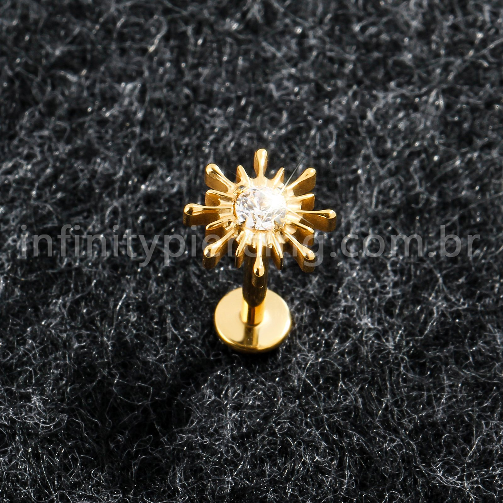 Piercing Labret Titânio Sol Com Pedra Cravejada - Infinity Piercing