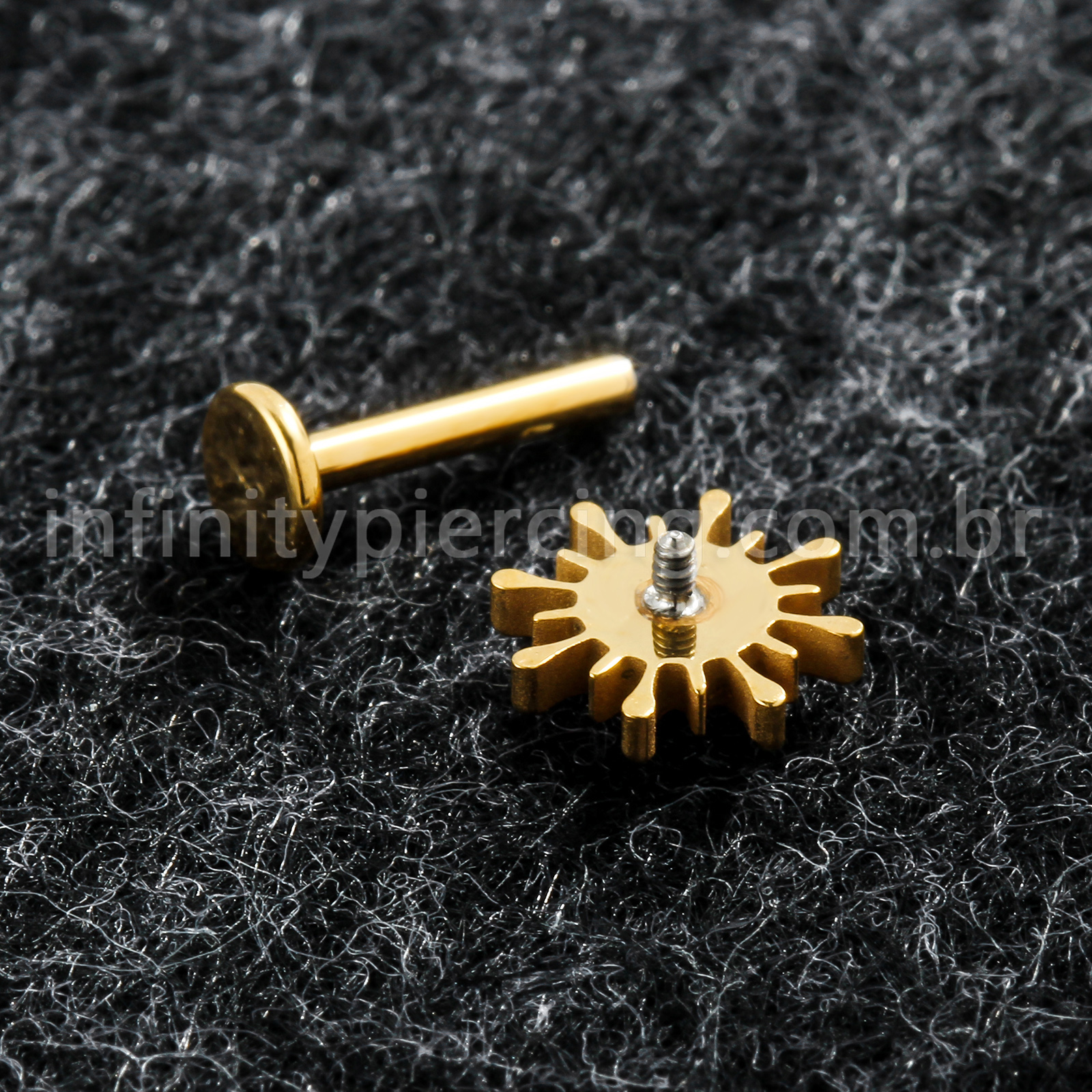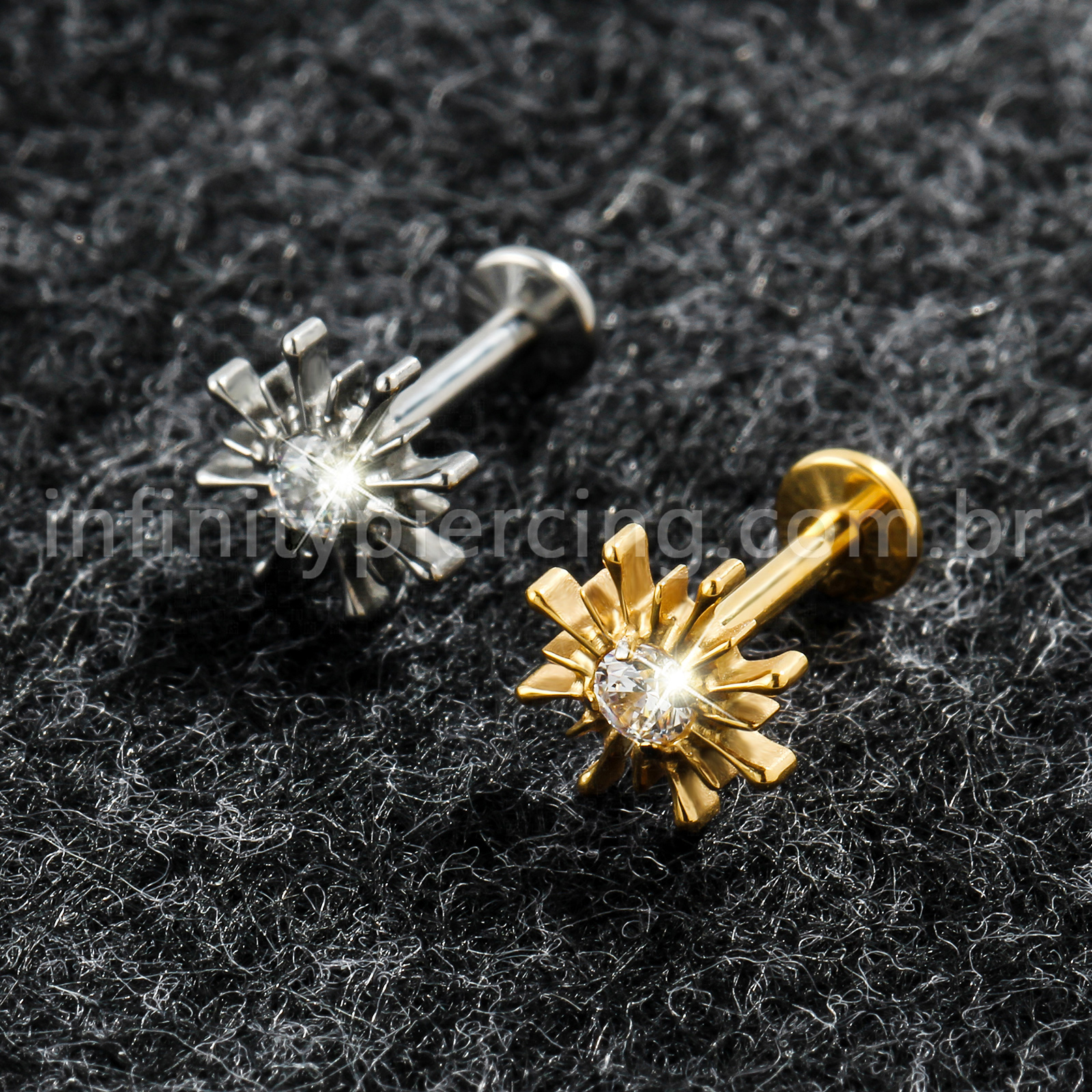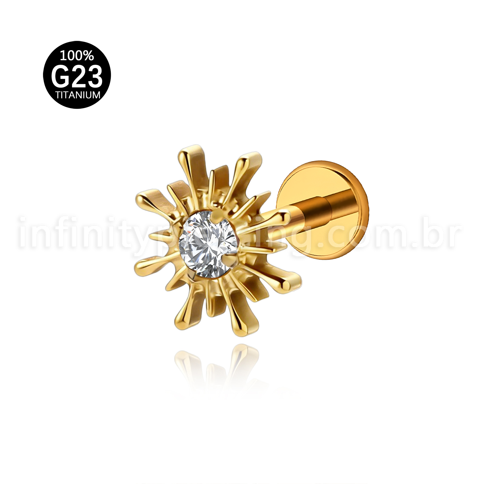 Piercing Labret Titânio Sol Com Pedra Cravejada - Infinity Piercing