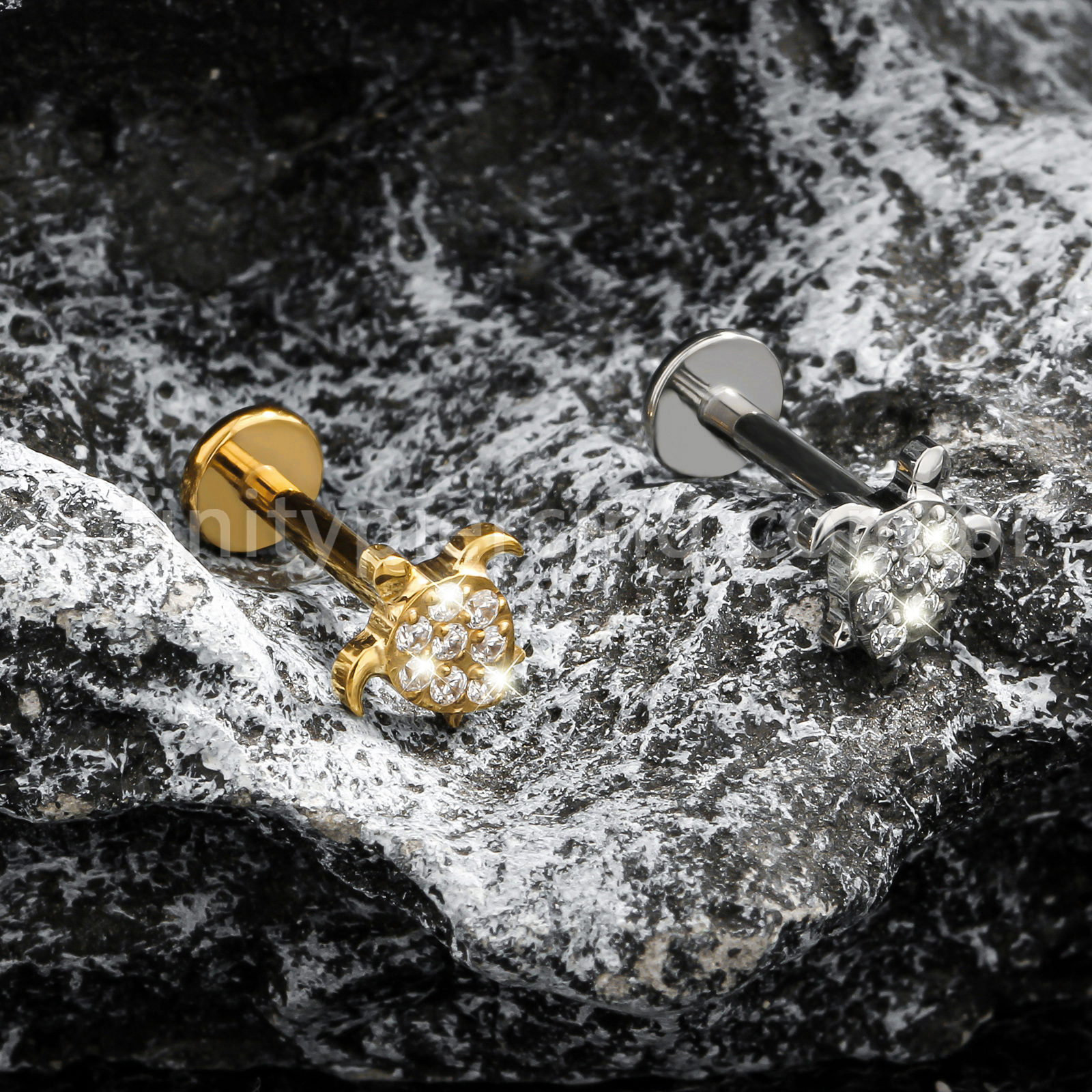 Piercing Labret Titânio Tartaruga Zircônia Cravejada