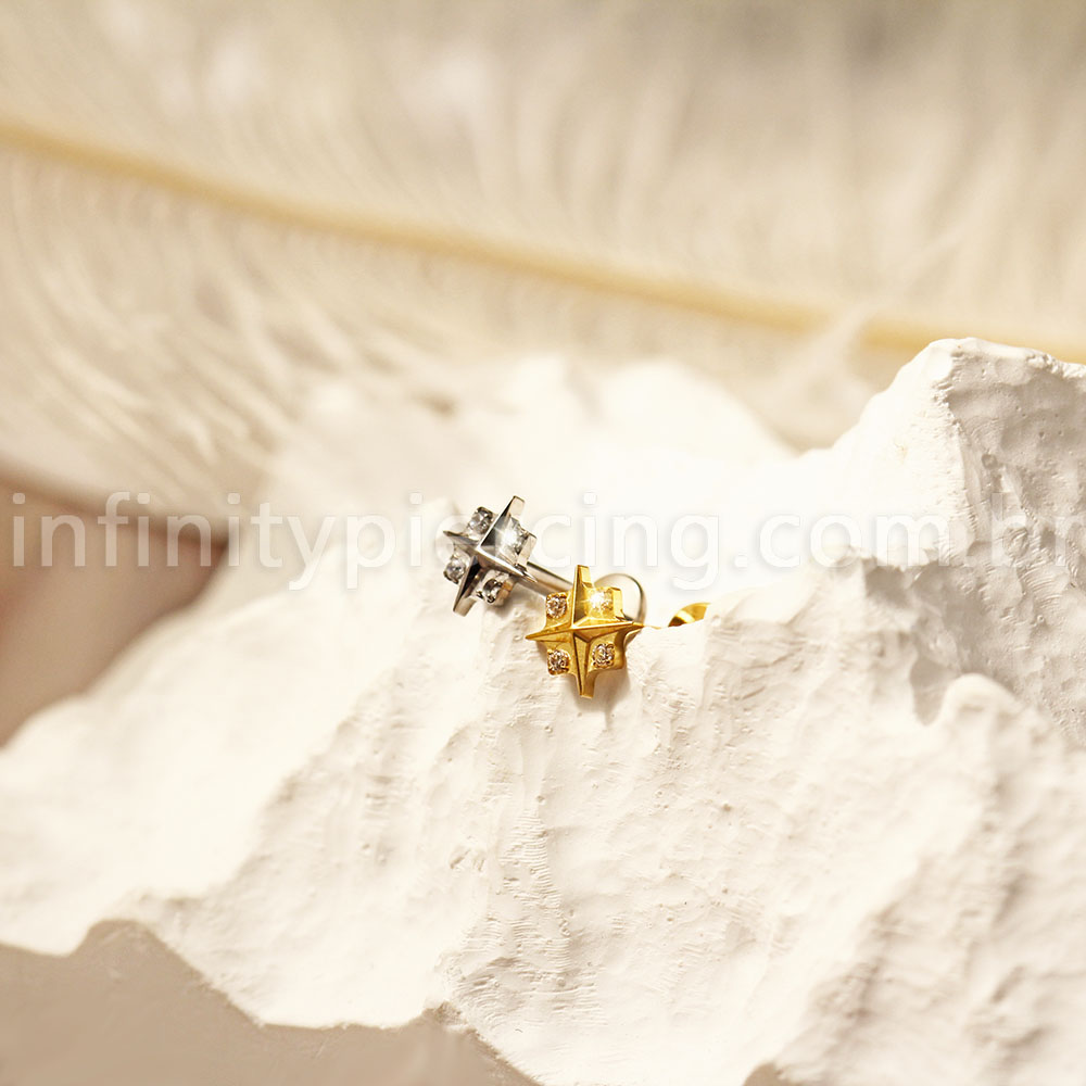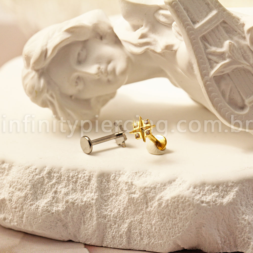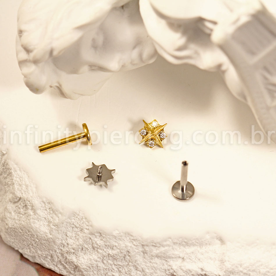 Piercing Labret Rosca Interna Titânio Zircônia Folhas