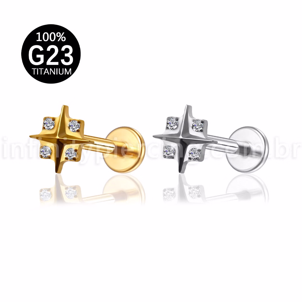 Piercing Labret Titânio X Zircônia Cravejada - Infinity Piercing