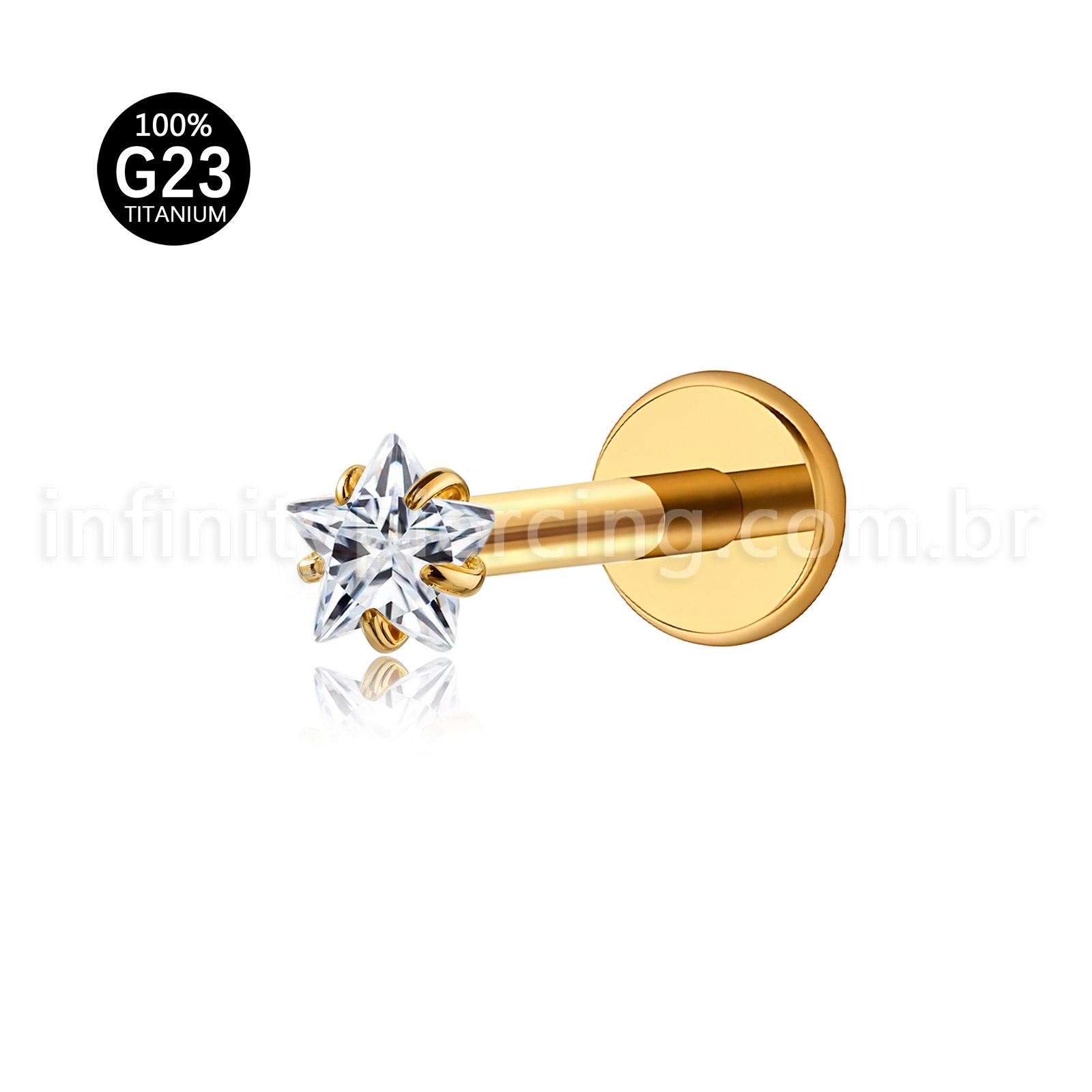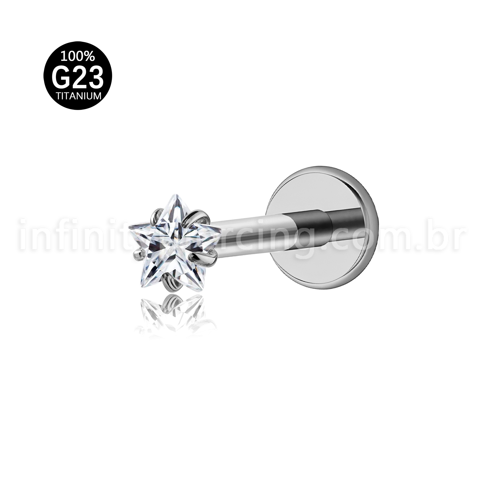 Piercing Labret Titânio Zircônia Cravejada Estrela - Infinity Piercing