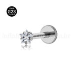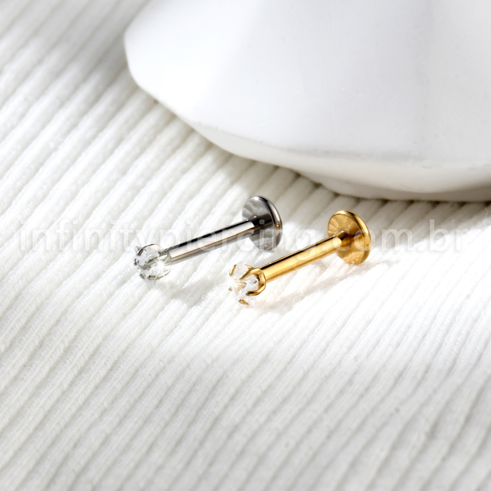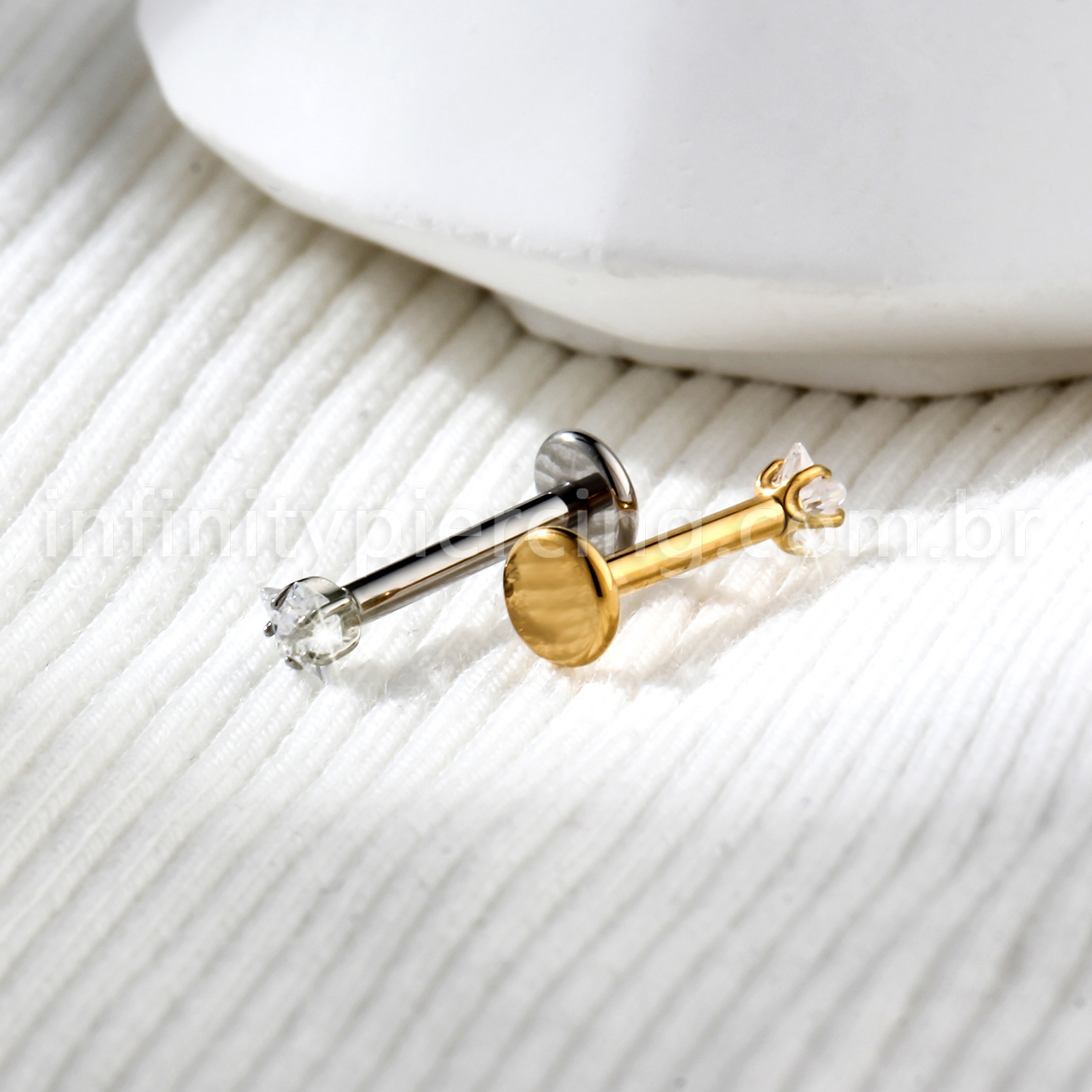Piercing Labret Rosca Interna Titânio Zircônia Folhas