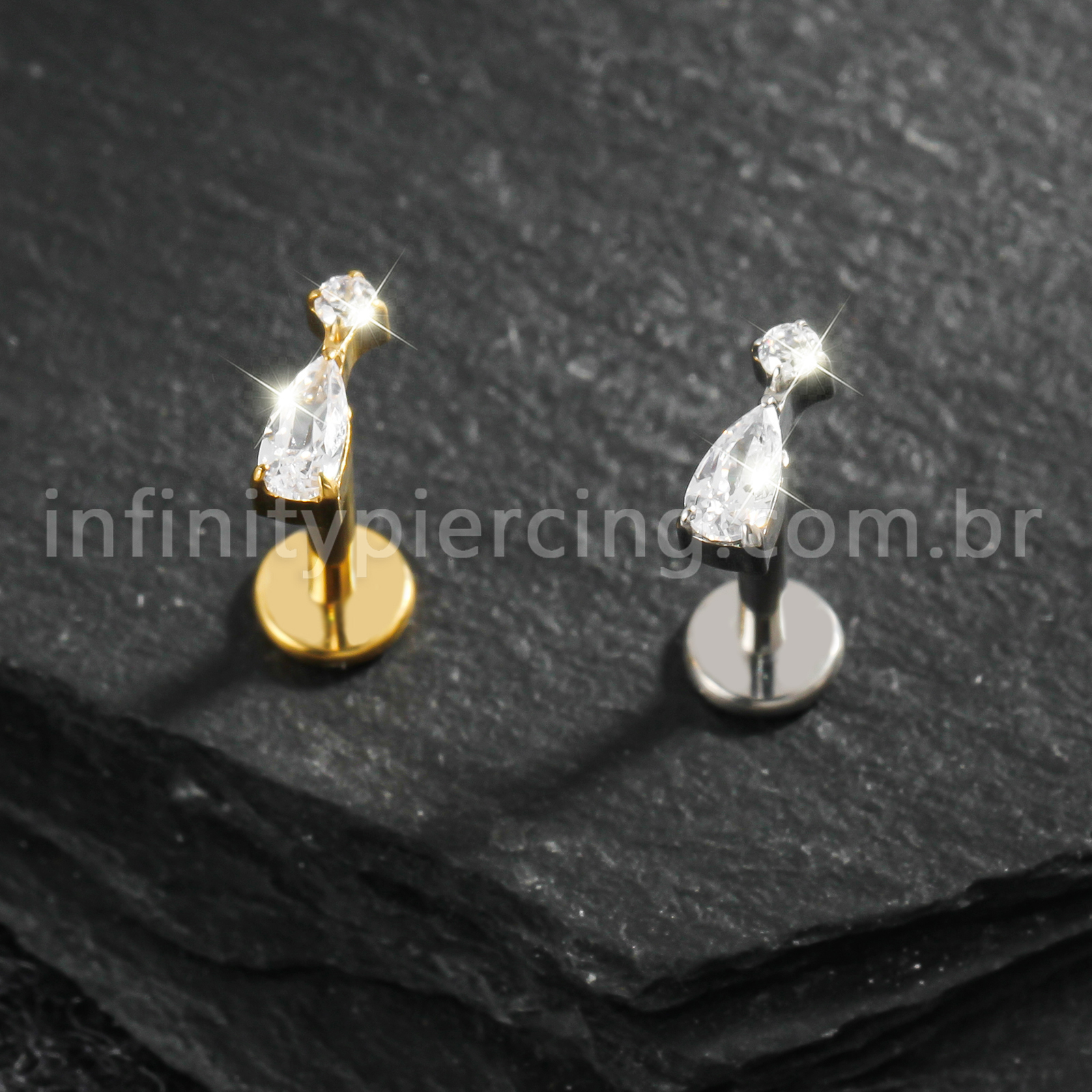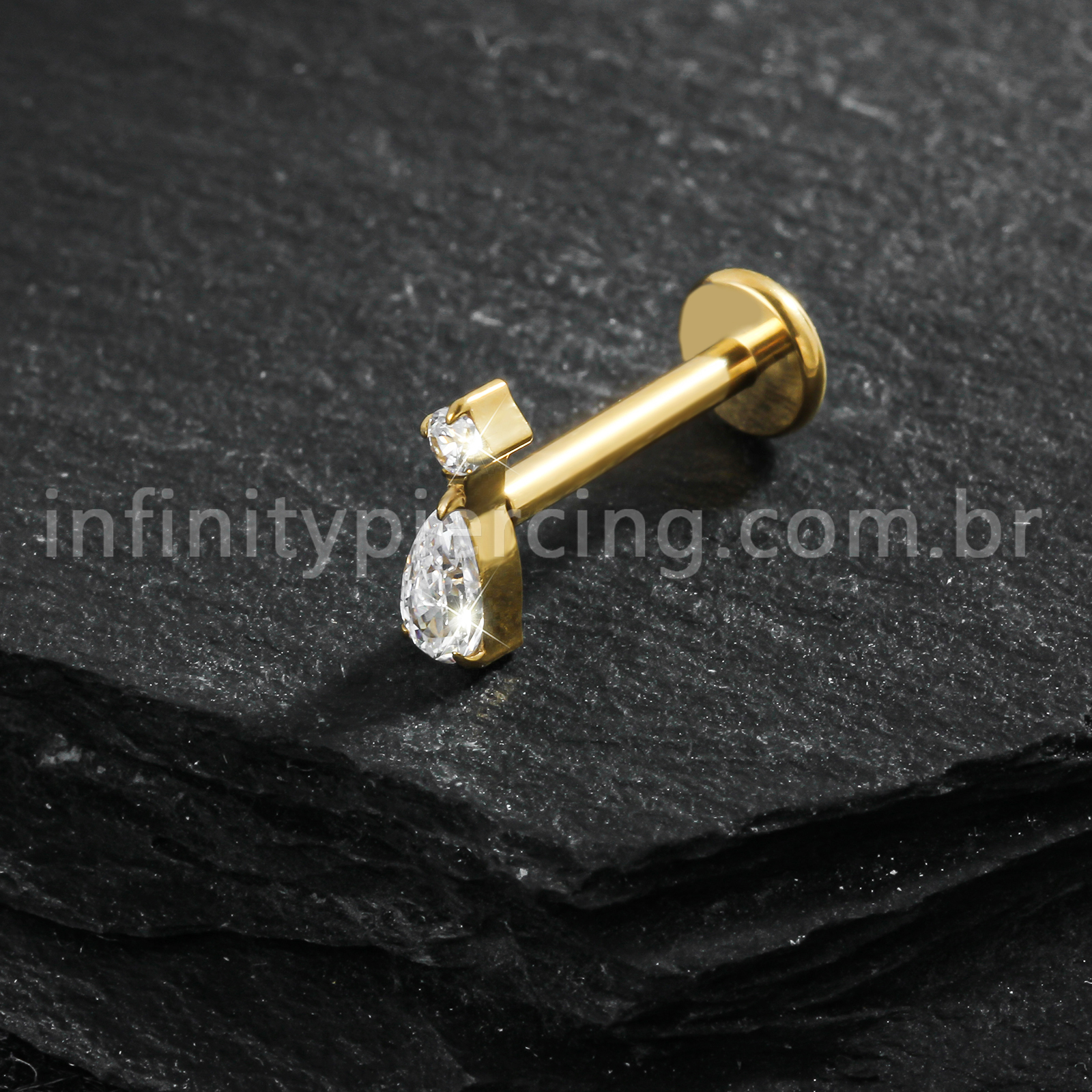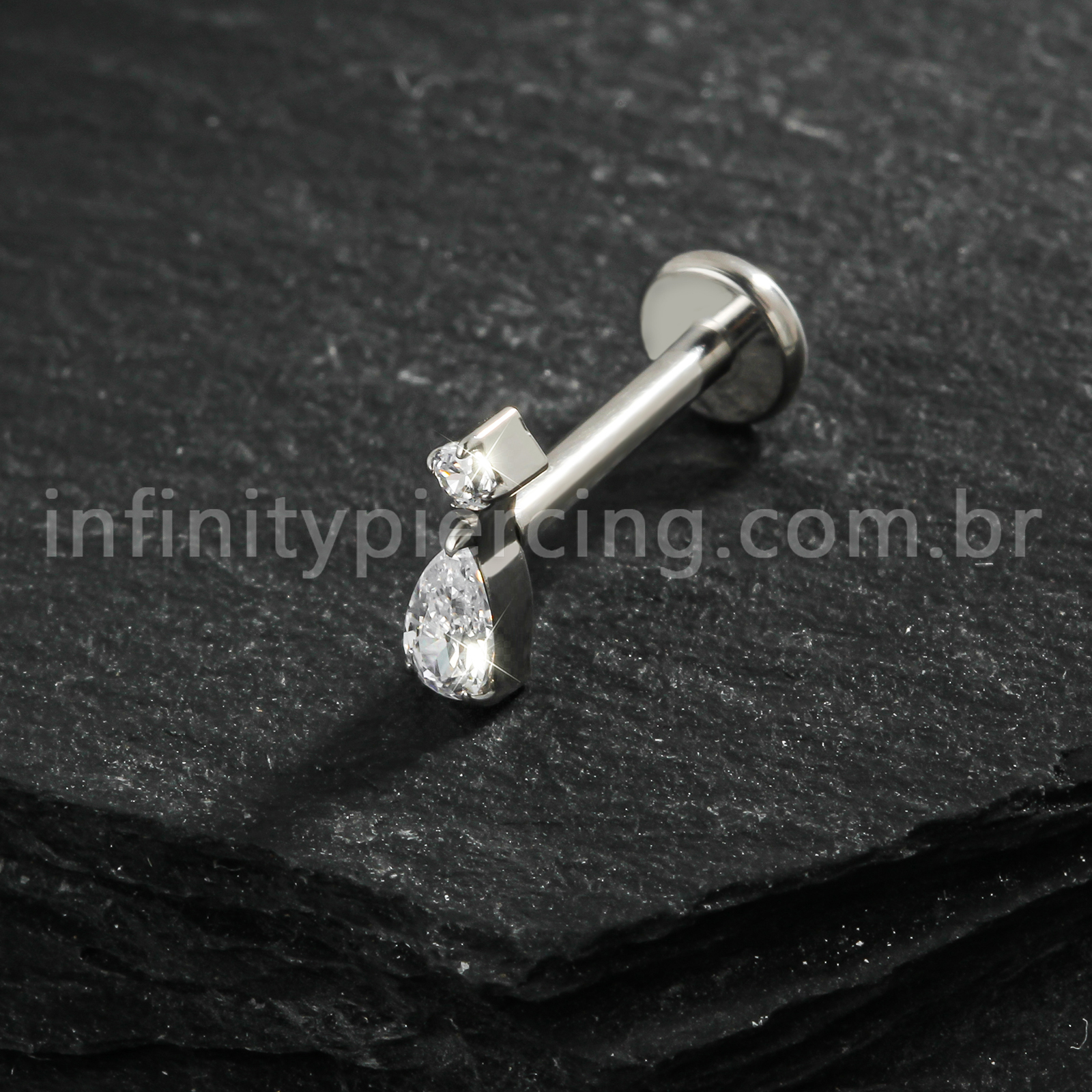 Piercing Labret Titânio Zircônia Cravejada Gota - Infinity Piercing