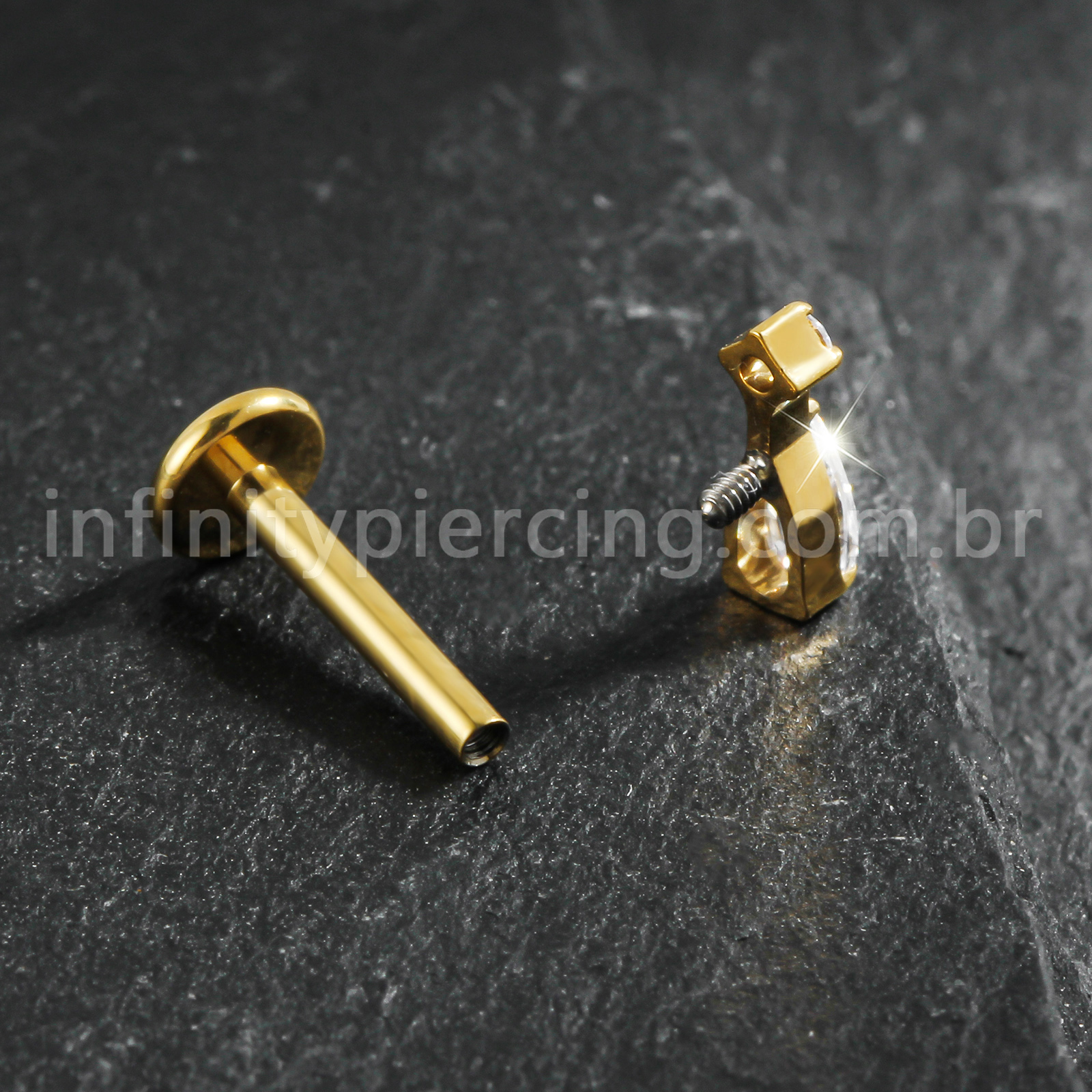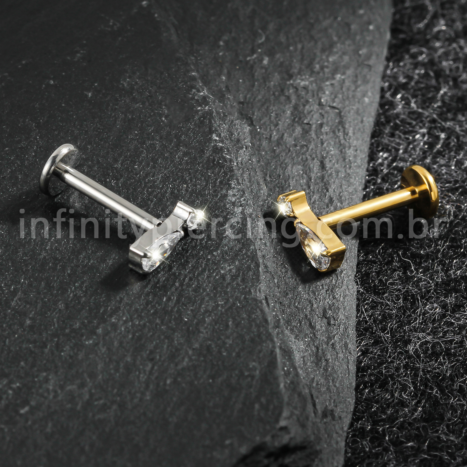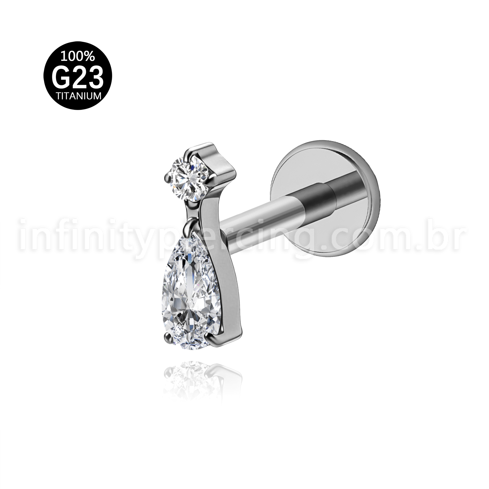 Piercing Labret Titânio Zircônia Cravejada Gota - Infinity Piercing