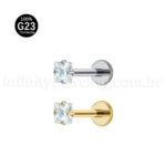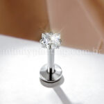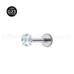Piercing Labret Titânio Zircônia Cravejada Quadrada