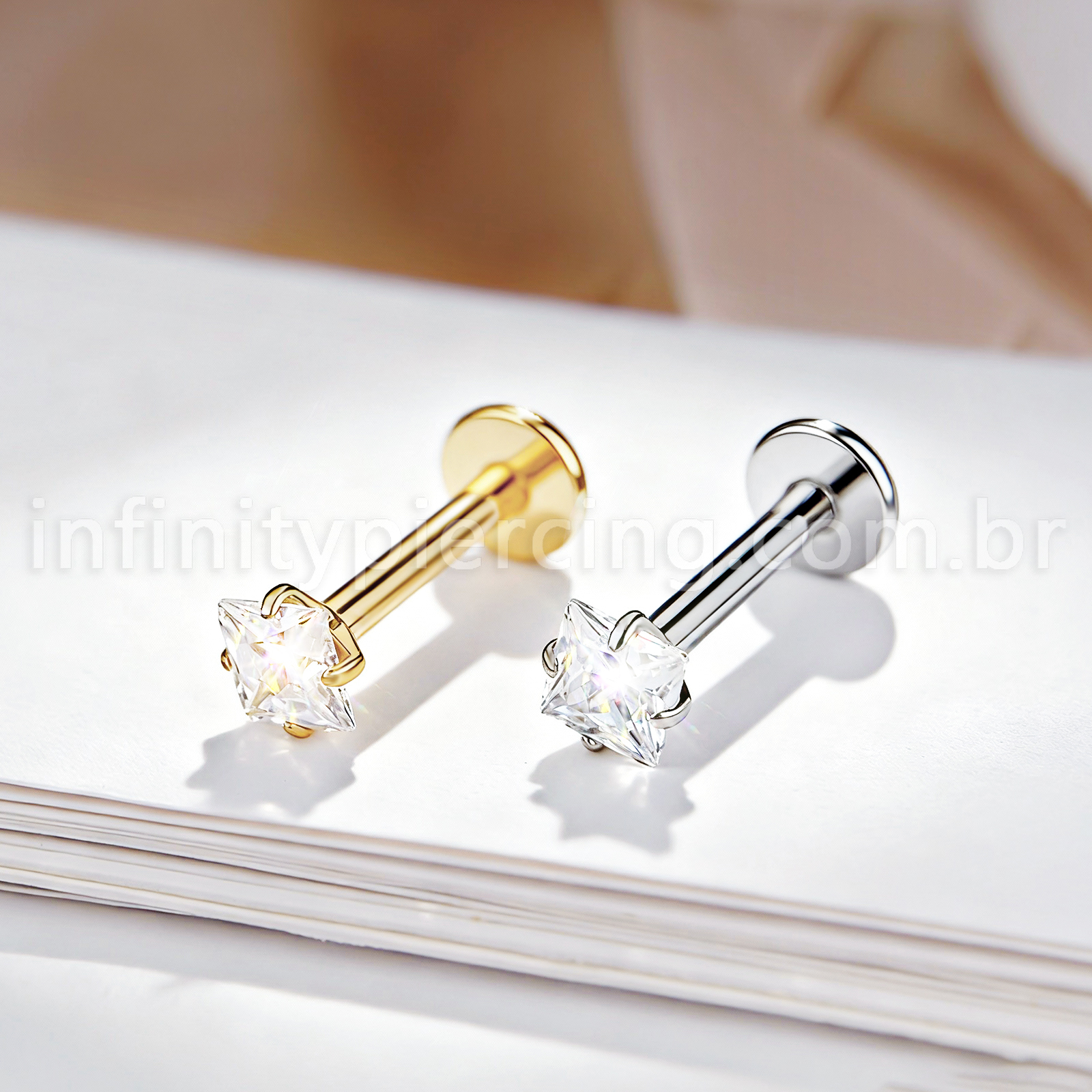 Início Piercing Titânio Labret Piercing Labret Titânio Zircônia Cravejada Quadrada