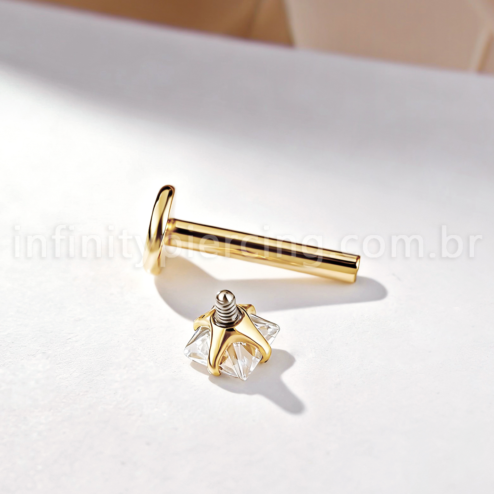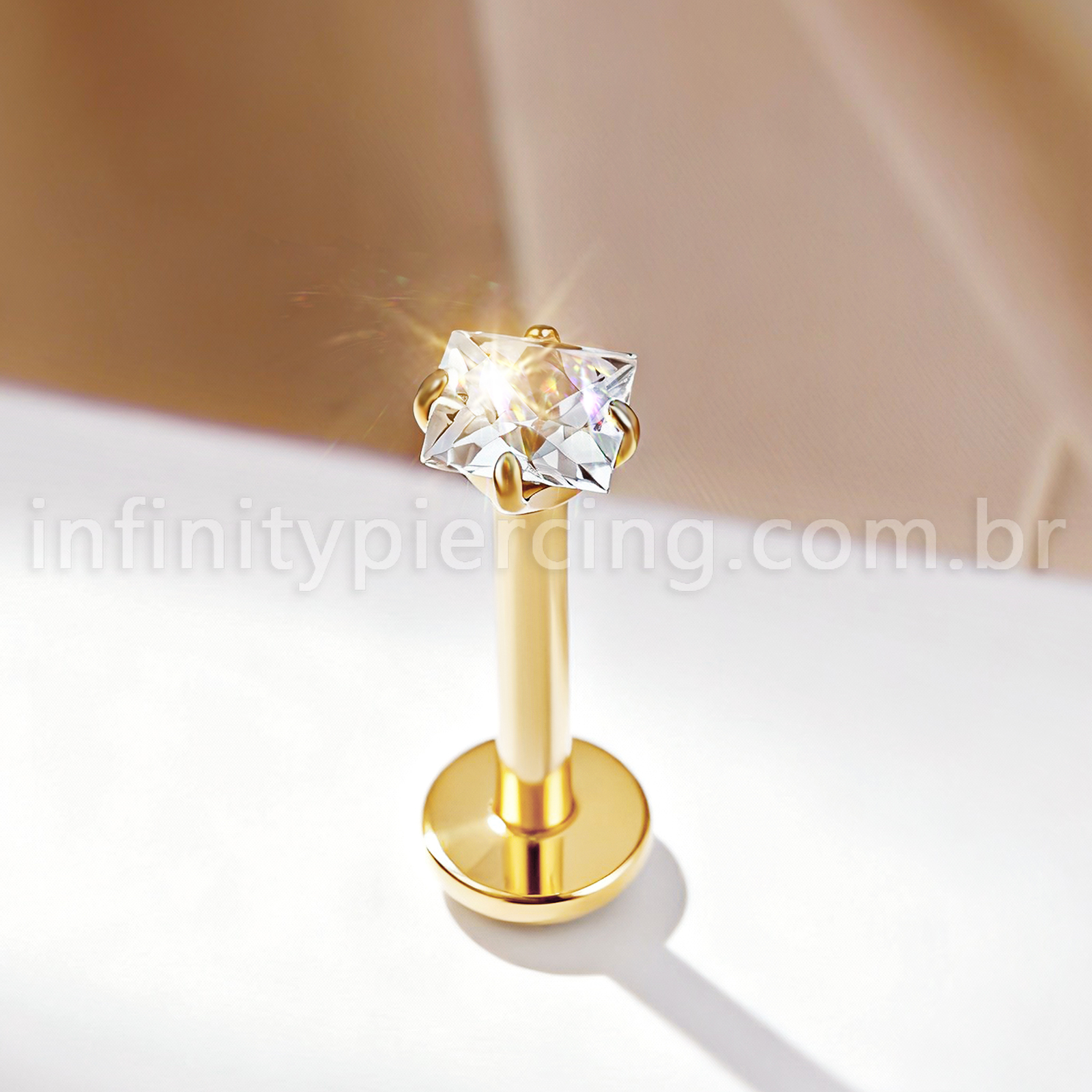 Piercing Labret Titânio Zircônia Cravejada Quadrada - Infinity Piercing