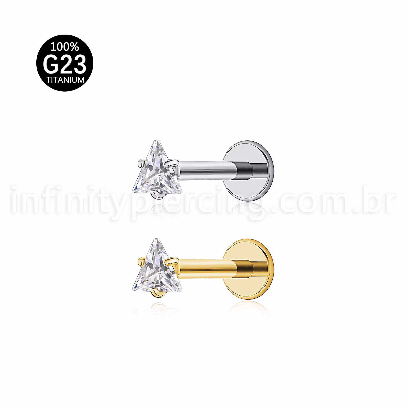 Piercing Labret Titânio Zircônia Cravejada Triangulo - Infinity Piercing