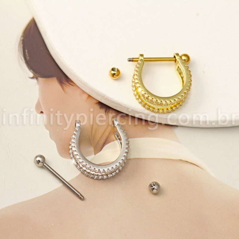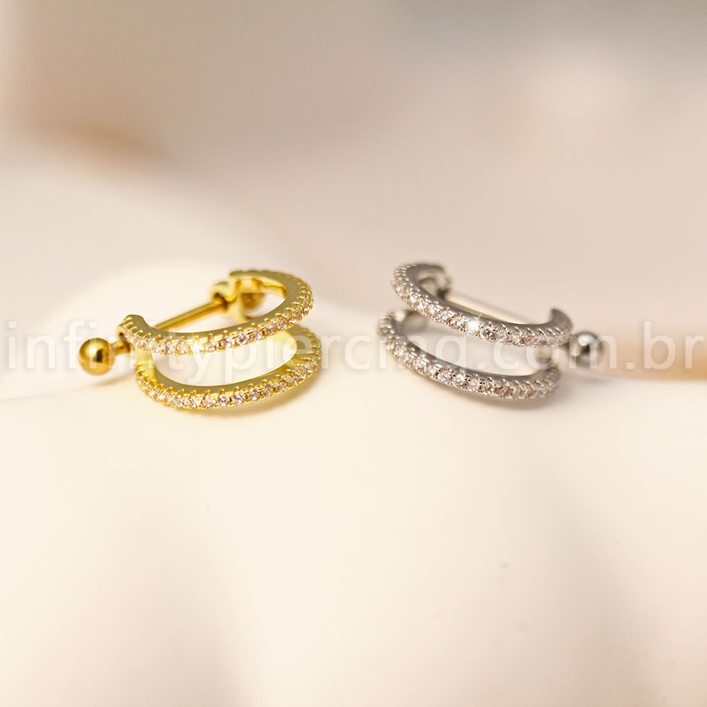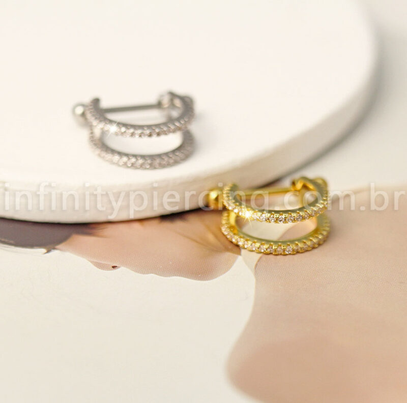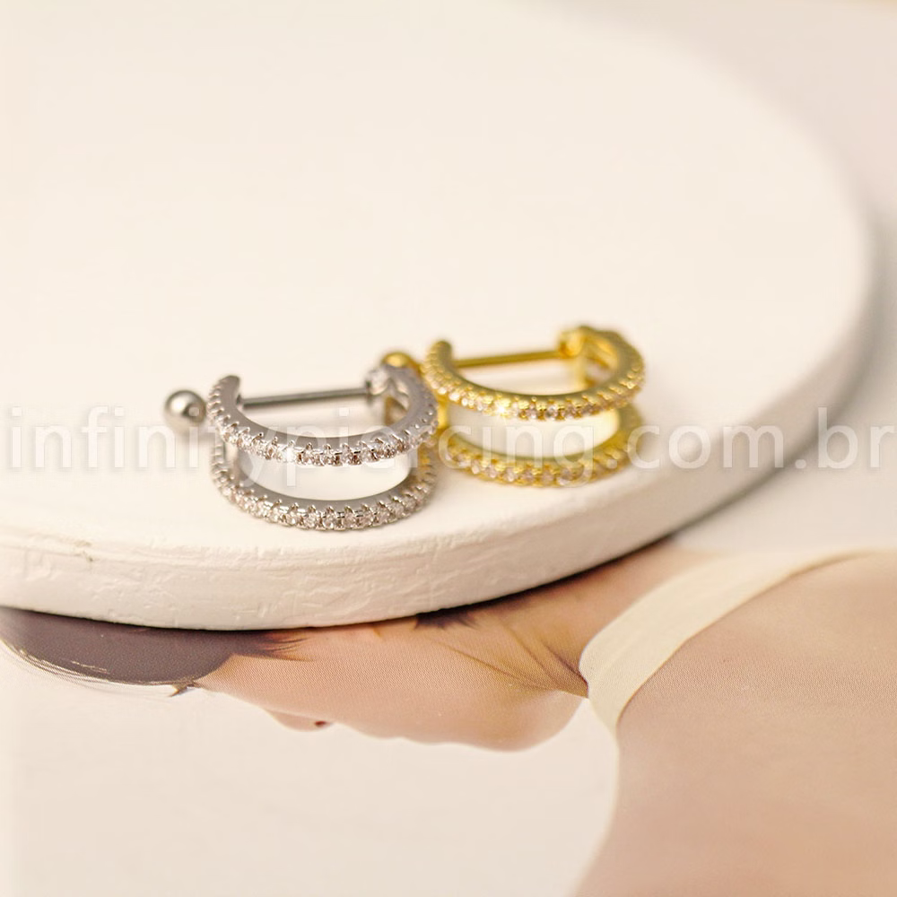 Piercing Meia Argola Cobre 2 Fileiras Zircônia Cravejada - Infinity Piercing