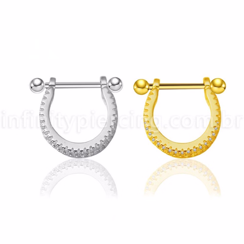 Piercing Ferradura Rosca Interna Titânio ZIRCÔNIA CRAVEJADA