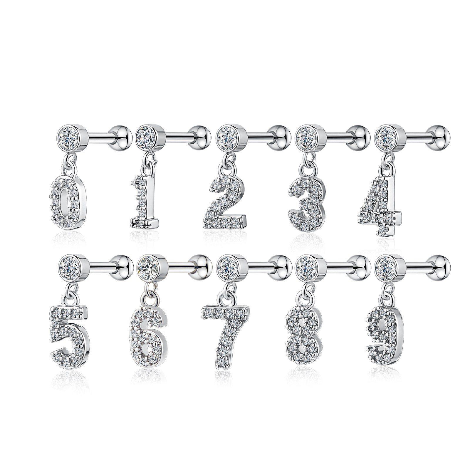 Início Piercing Cobre Piercing Minibarbell Aço Cirúrgico Com Pingente Números
