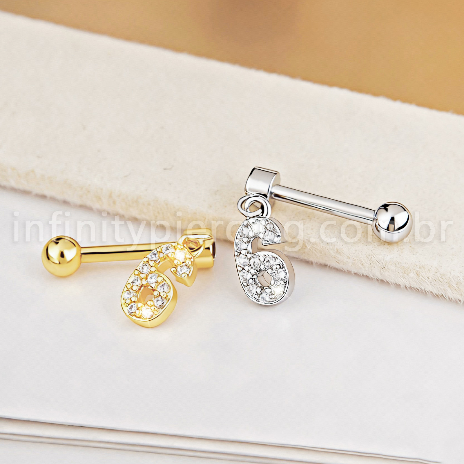 Piercing Minibarbell Aço Cirúrgico Com Pingente Números - Infinity Piercing