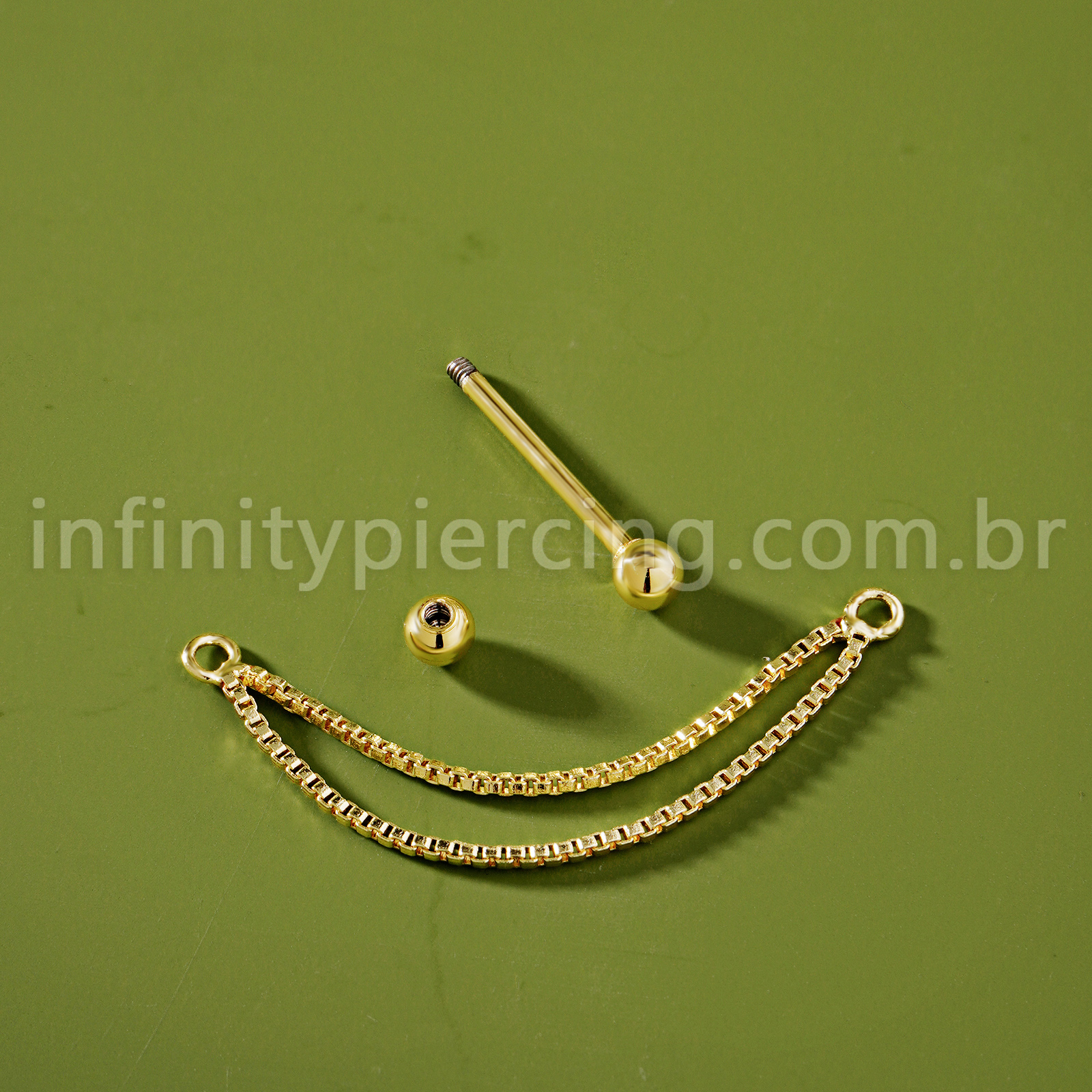 Piercing Minibarbell Cobre Com Corrente - Infinity Piercing
