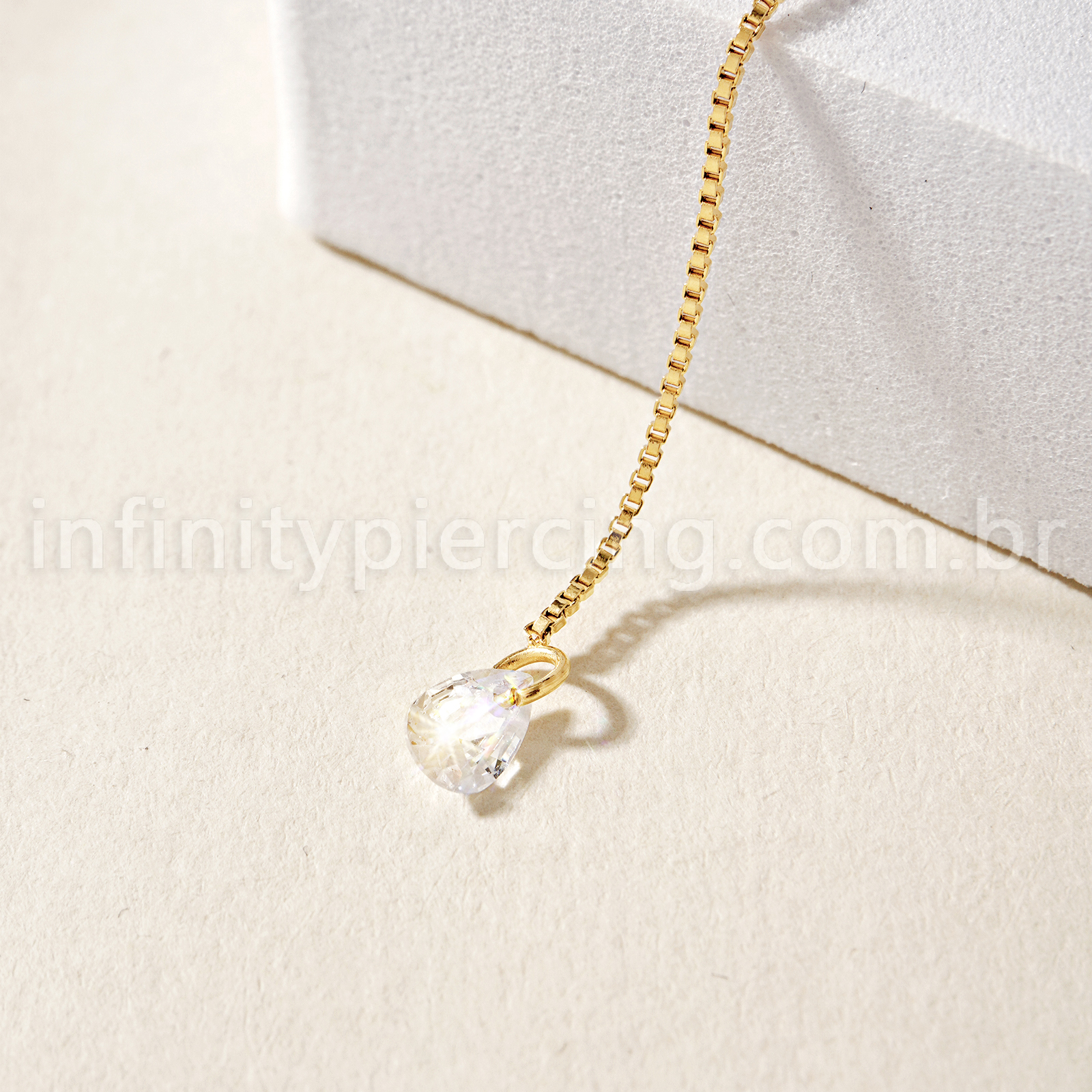 Piercing Palitinho Corrente Aço Cirúrgico Zircônia Gota - Infinity Piercing