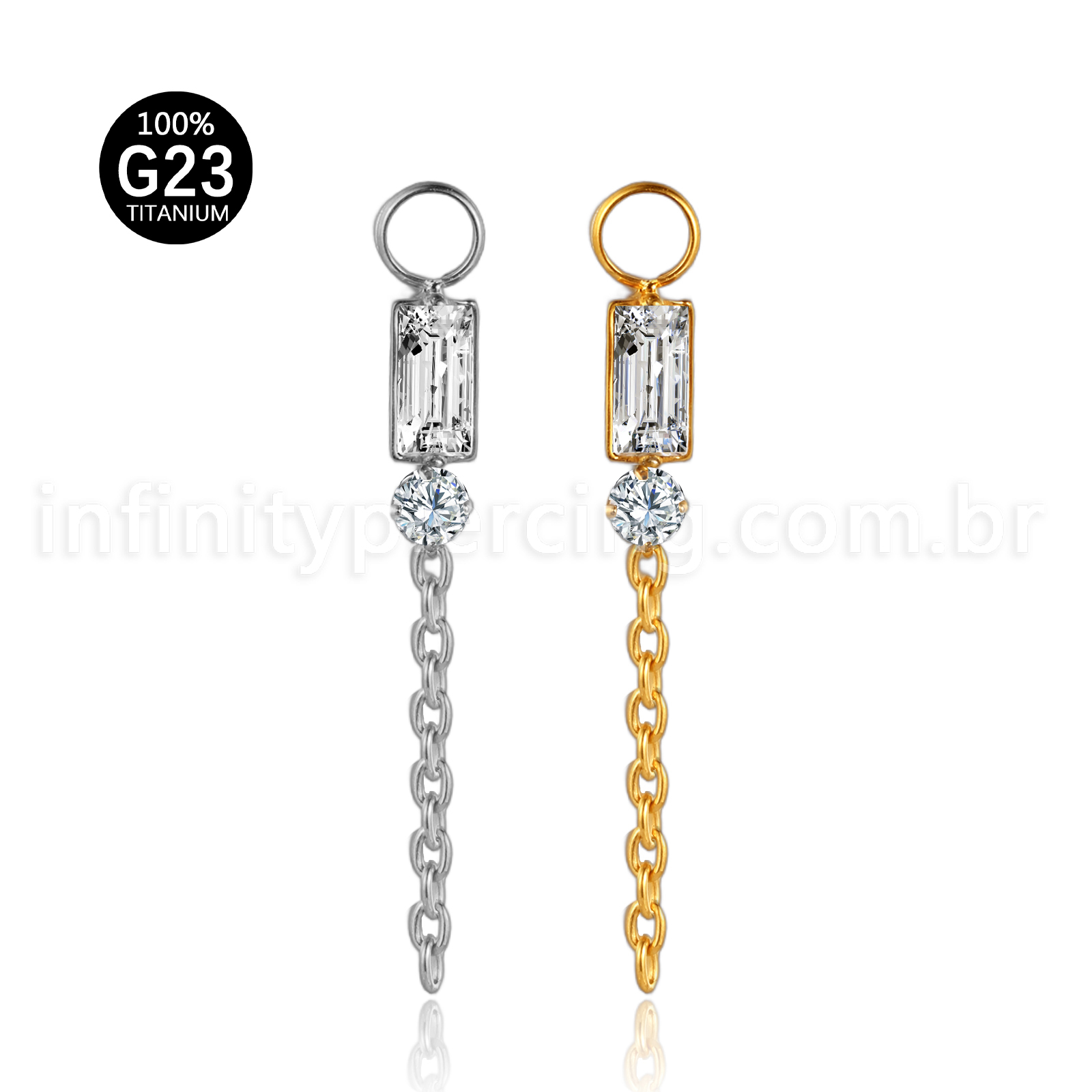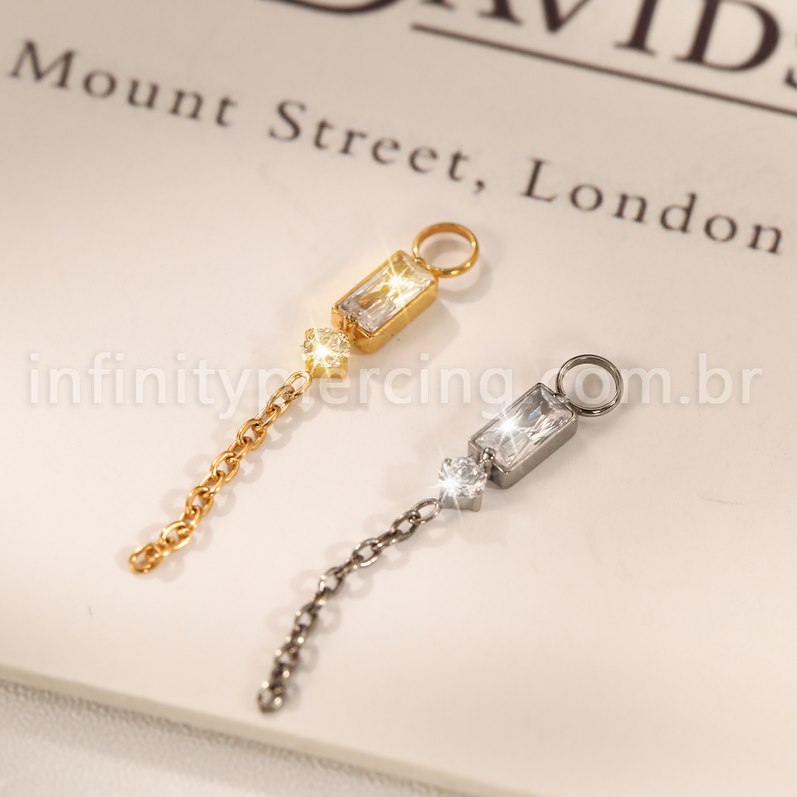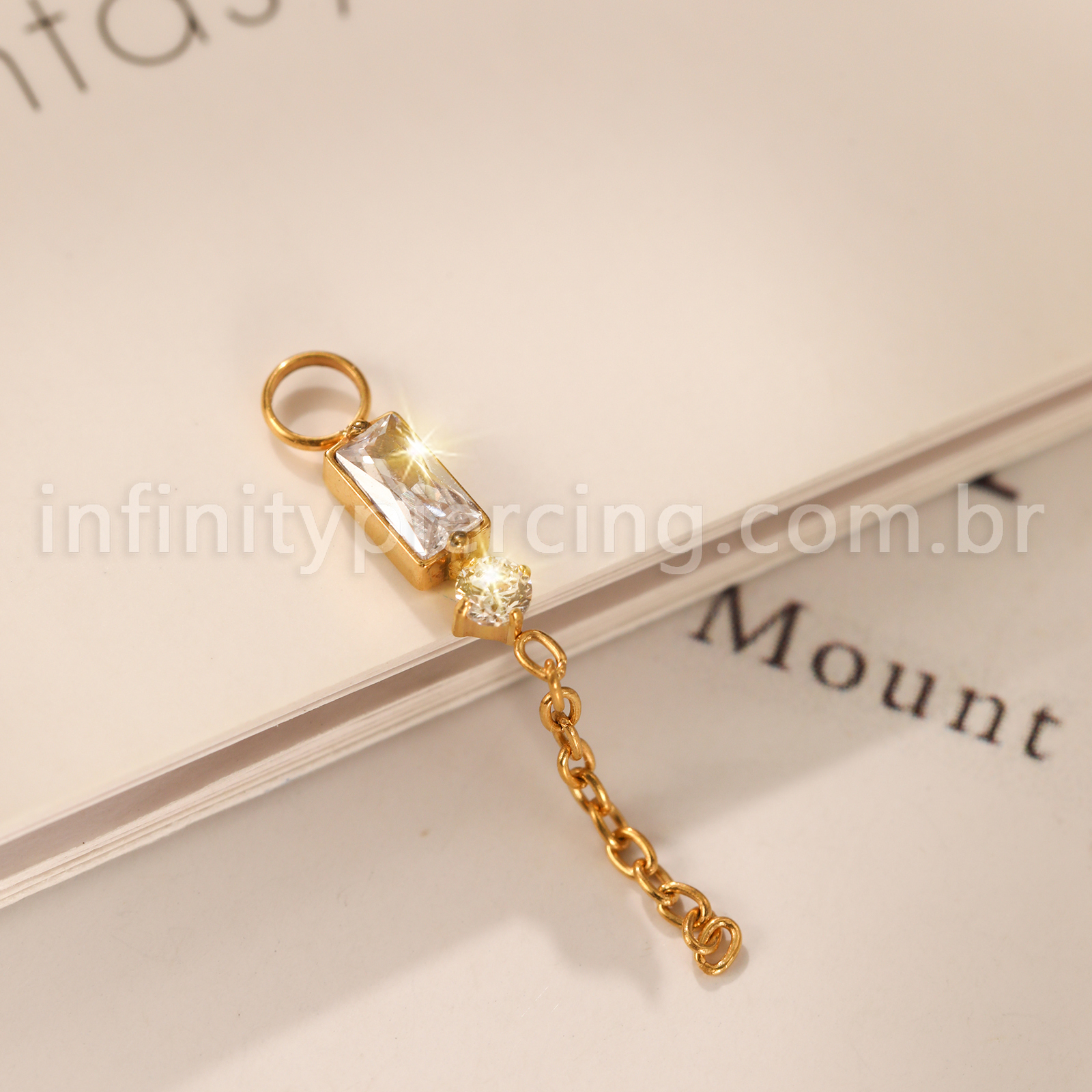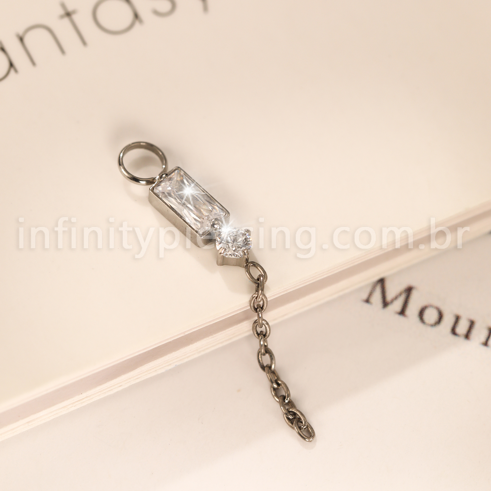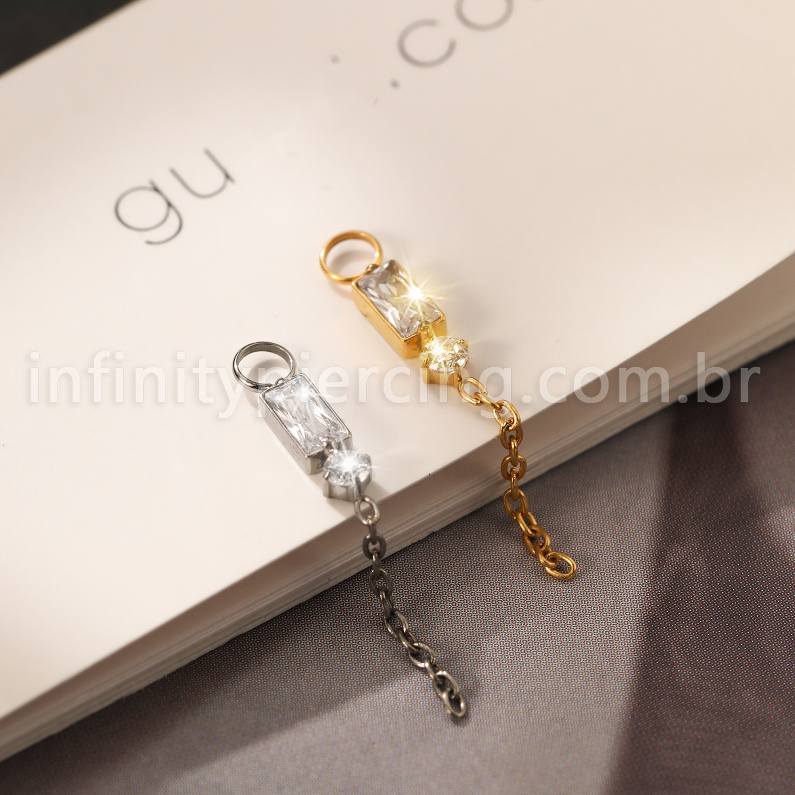Pingente Para Piercing Titânio 2 Pedras Zircônia - Infinity Piercing