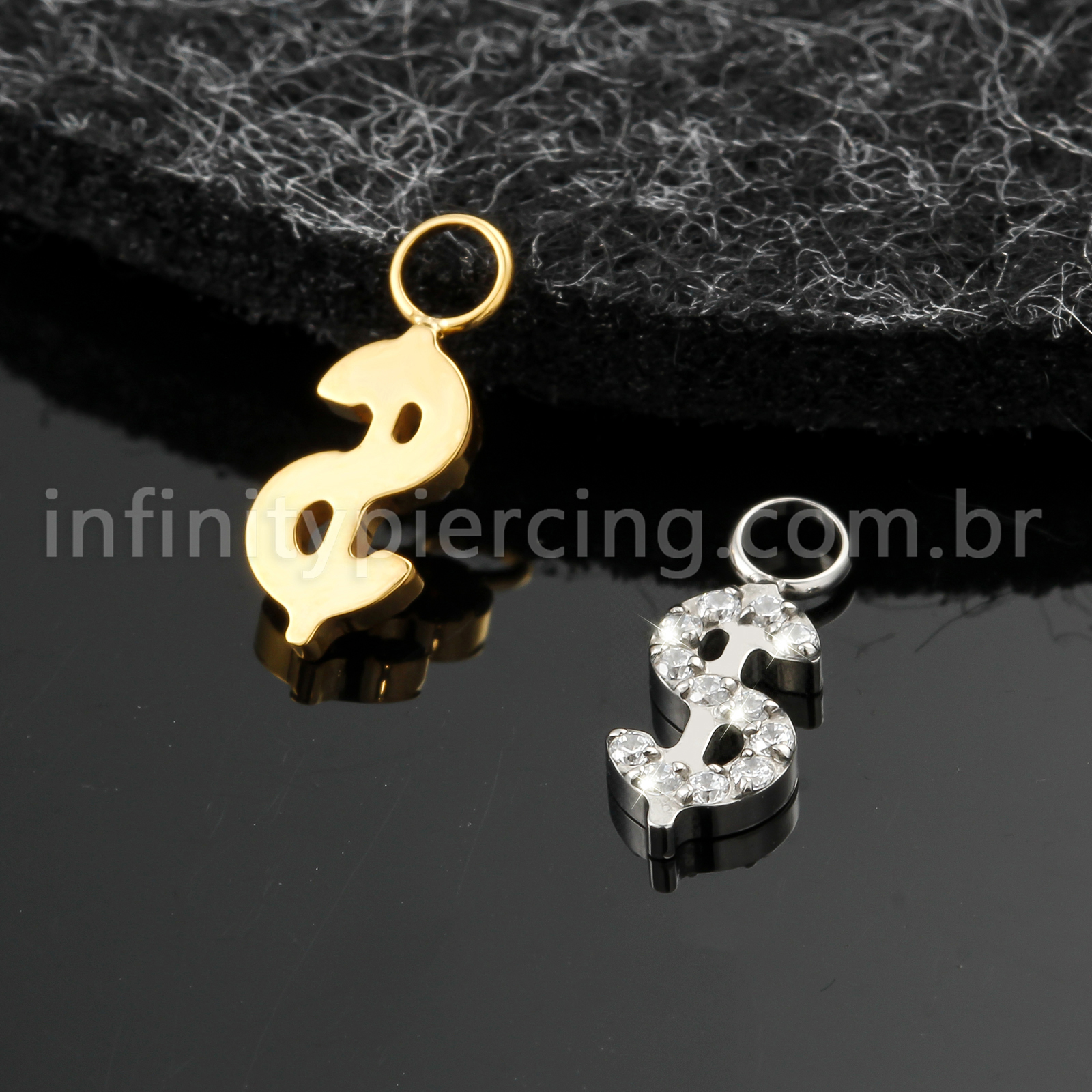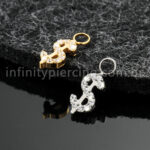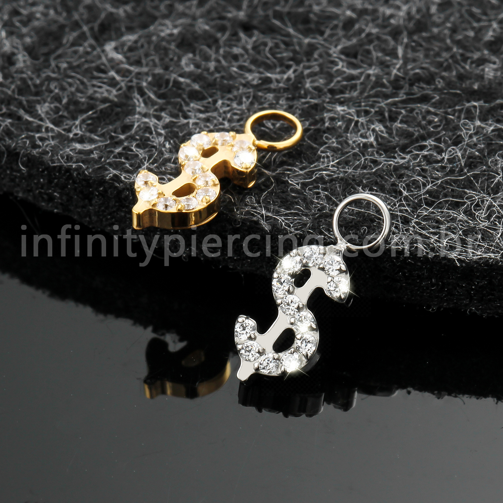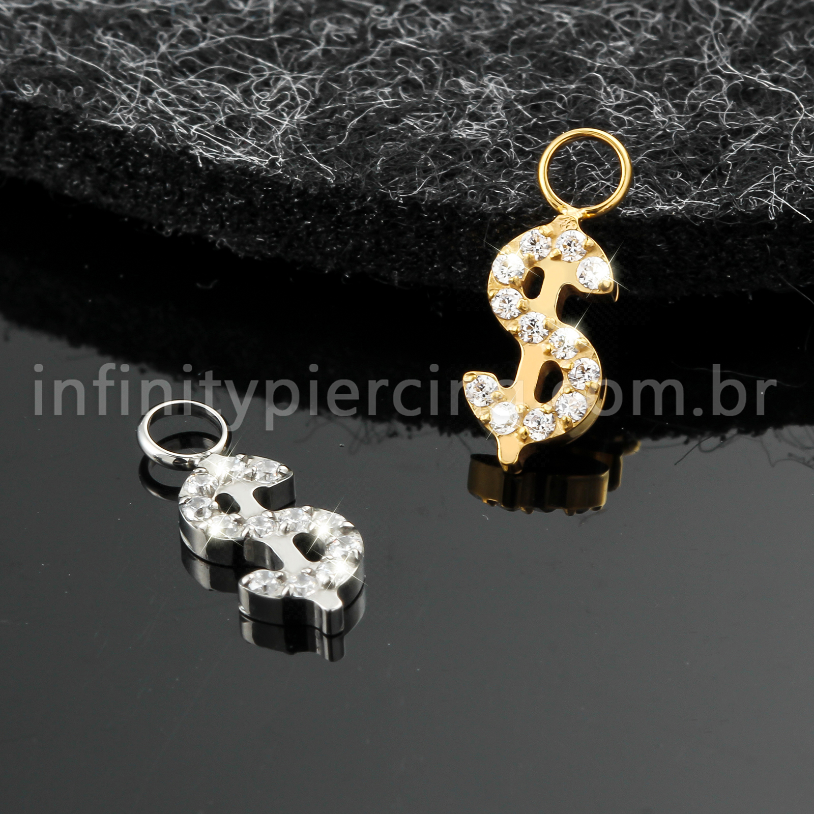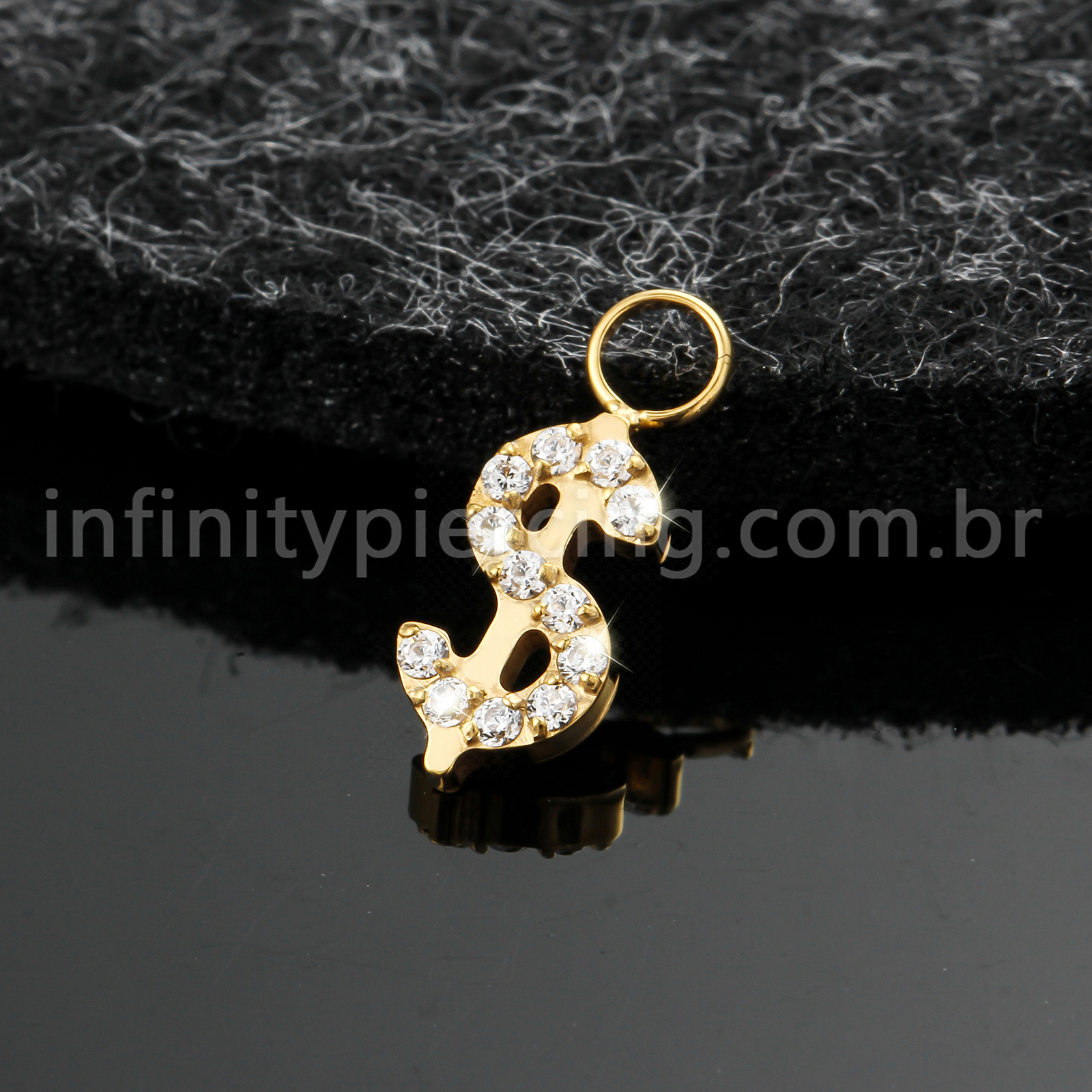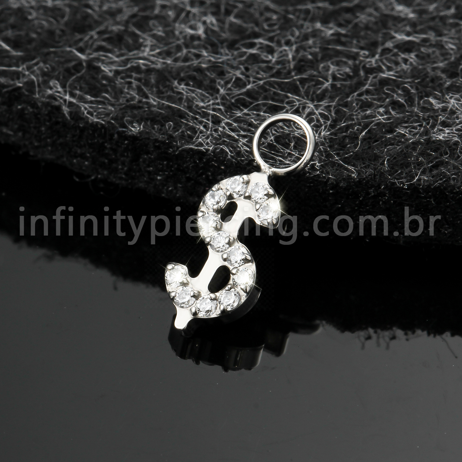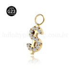 Pingente Para Piercing Titânio Cifrão Zircônia Cravejada - Infinity Piercing